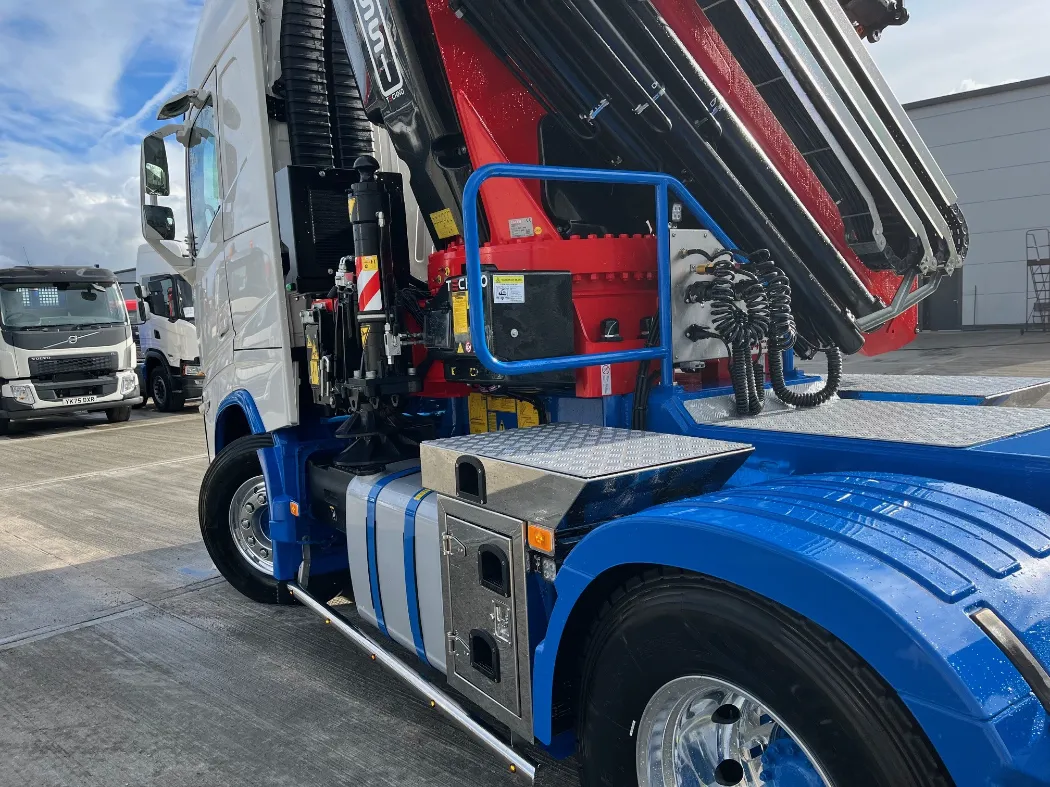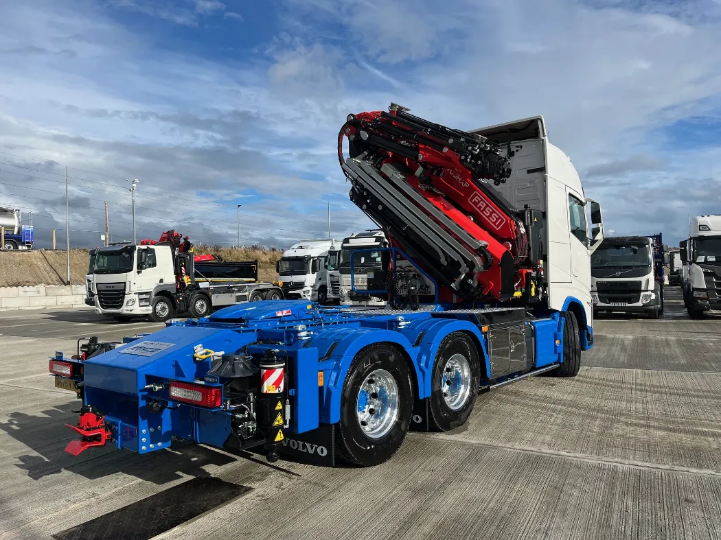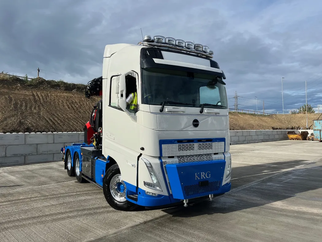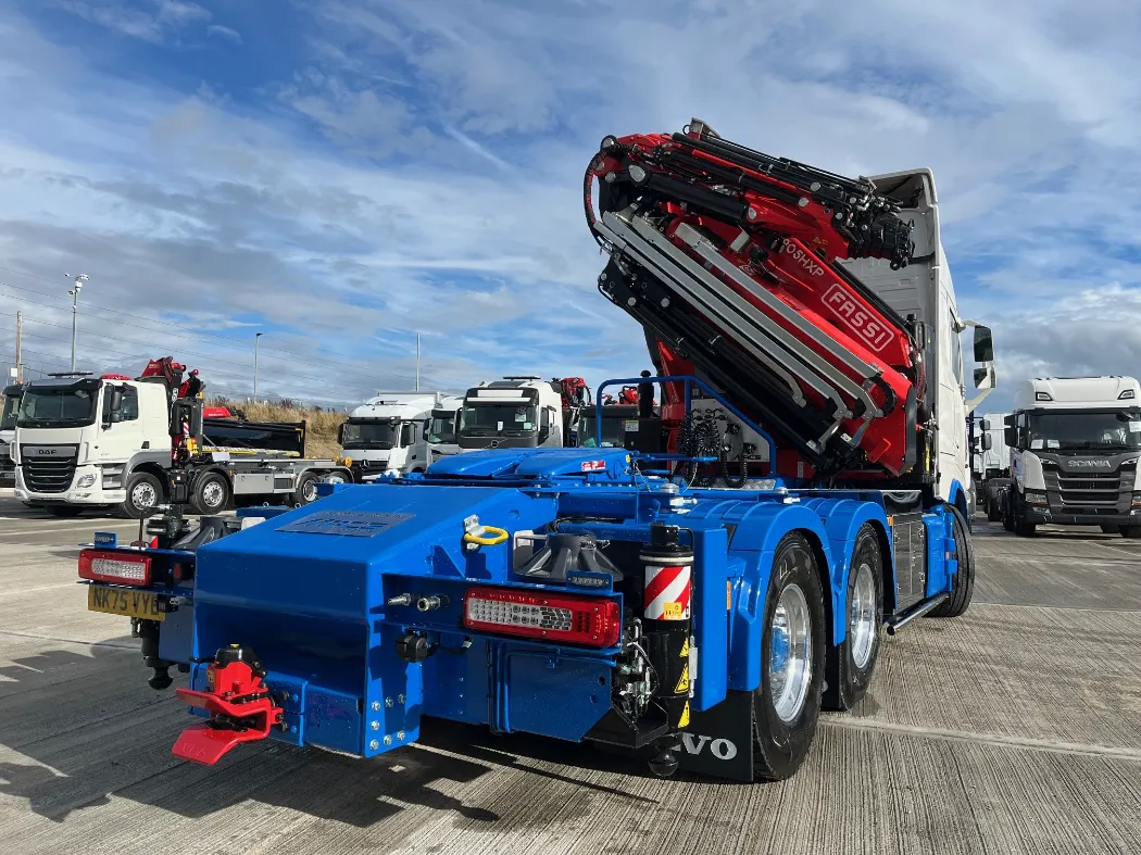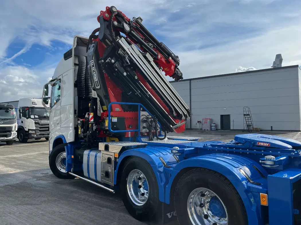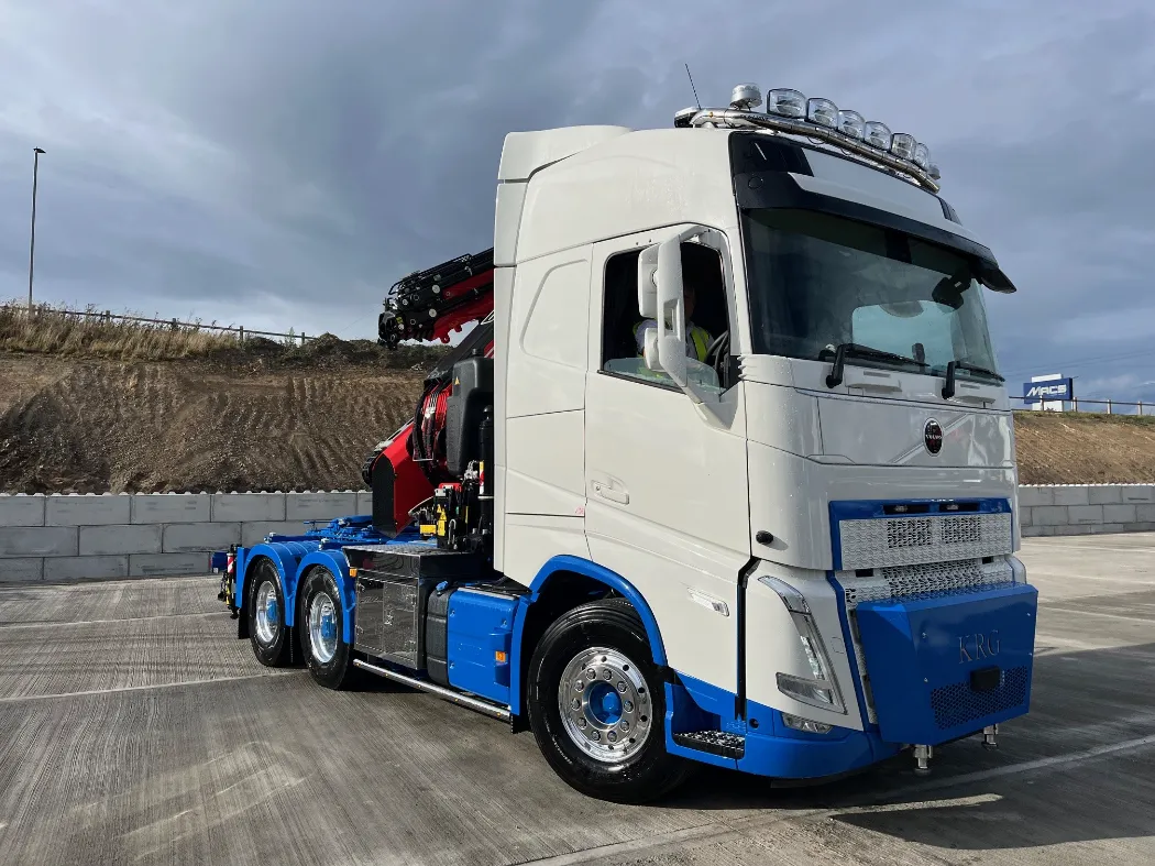 Now, they’ve raised the bar once again. In partnership with Mac’s, KRG has taken delivery of a truly groundbreaking new vehicle — the first FASSI F905 crane in the UK to be completed with a Fly Jib, mounted on a Volvo FH540 chassis.