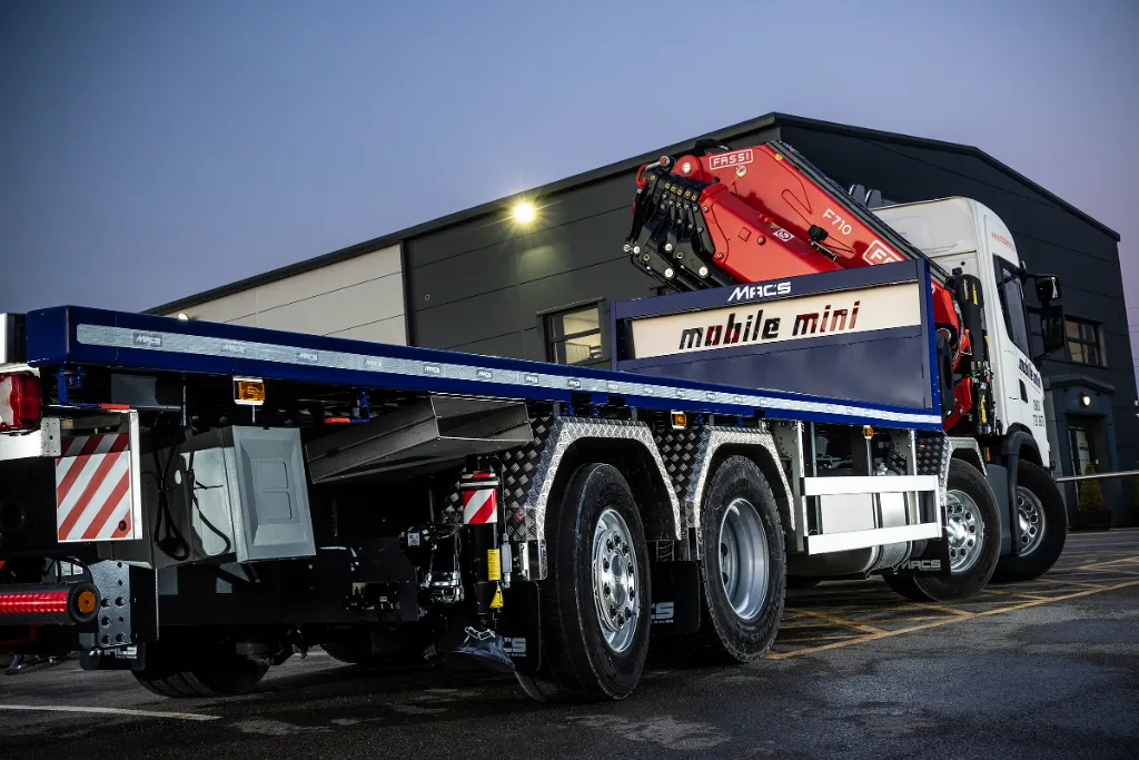 Mobile Mini (Now Algeco UK) vehicle Number 8! – That’s the last of the first batch of vehicles completed for Mobile Mini UK. The latest consists of the F710RA.2.26 with our signature patented front legs system allowing greater lifting capabilities over the front of the cab.
