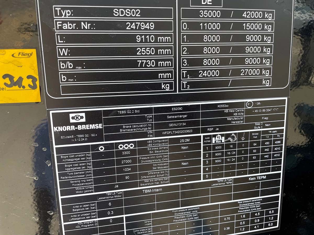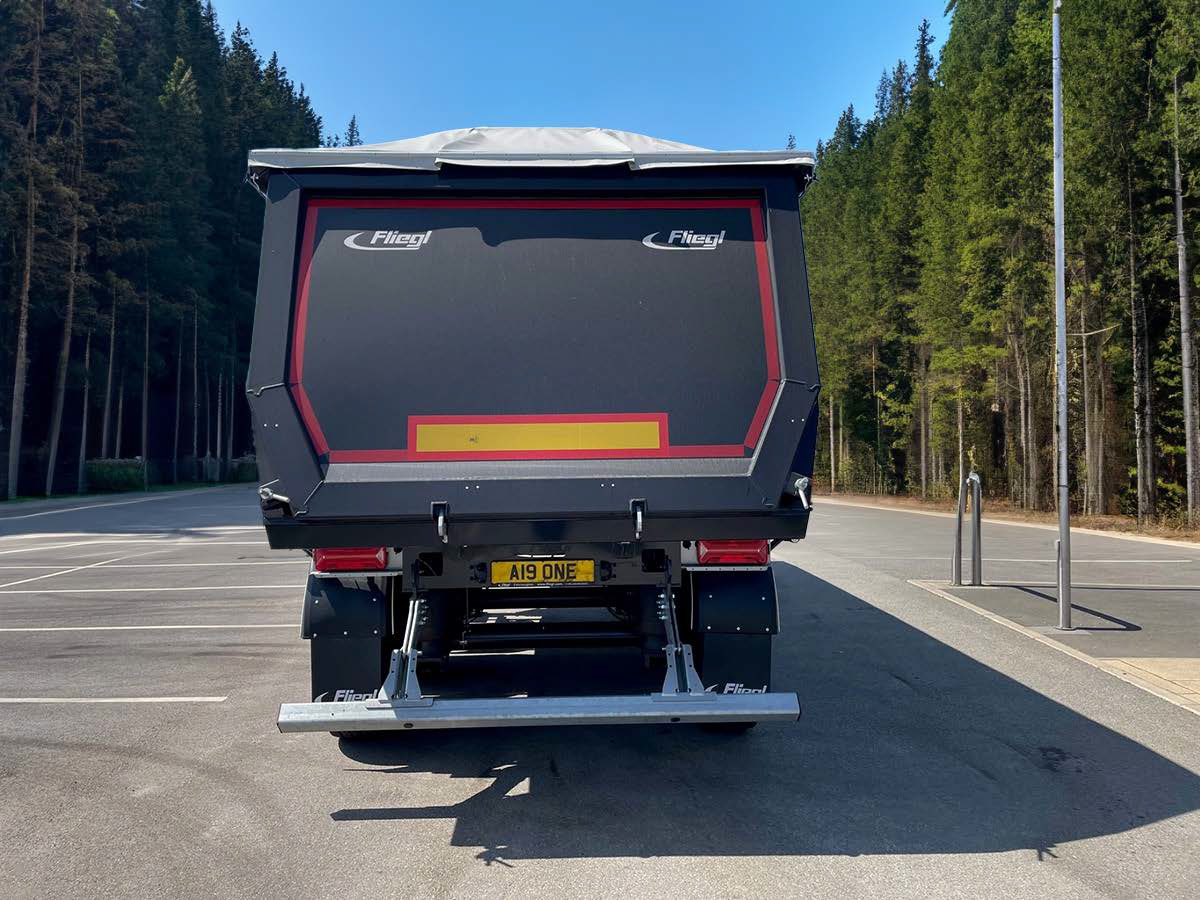 New Fliegl Steel stone master trailer 31 cbm – Tri axle – SAF disc brakes – Front lift axle – Hyva front tipping ram – Steel half pipe body made from high resistant HB 400/450 steel – Flip top electric sliding roof including working platform – 385 tyres
