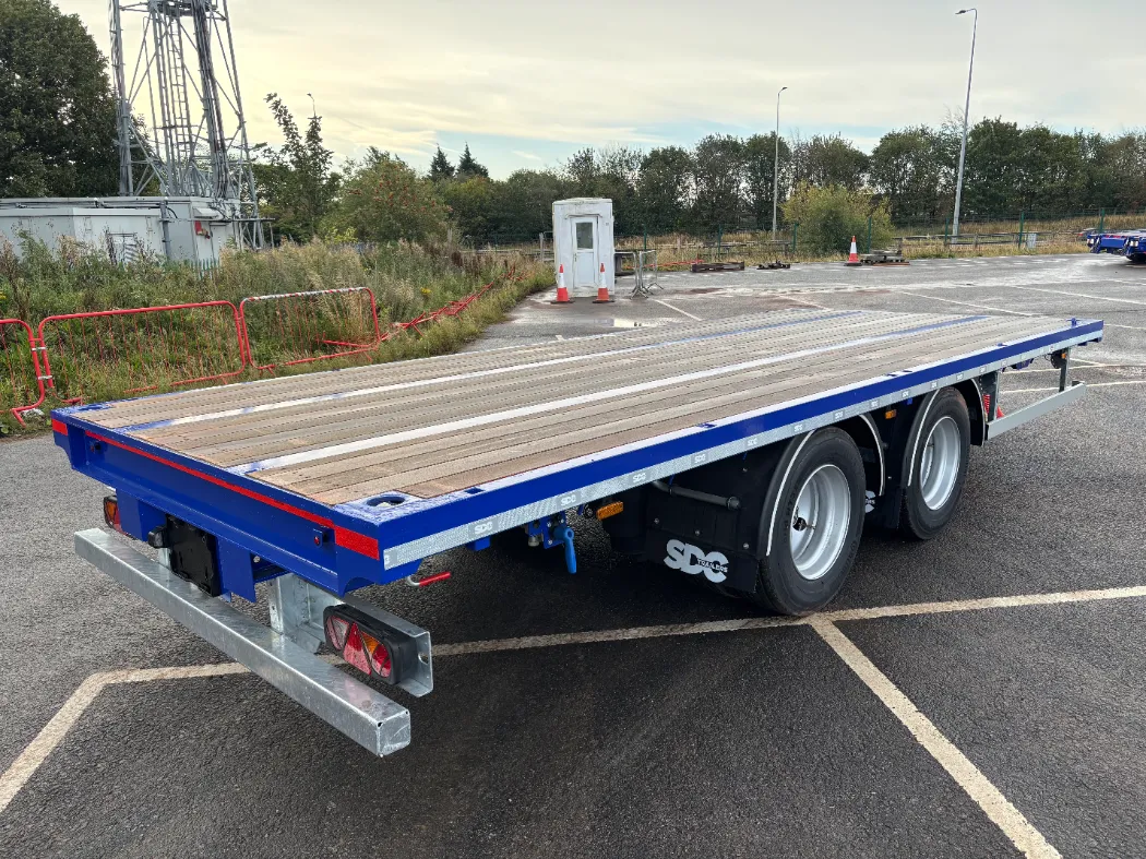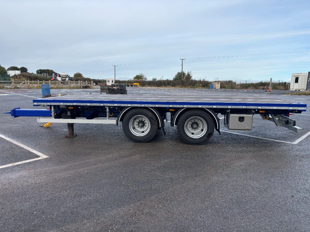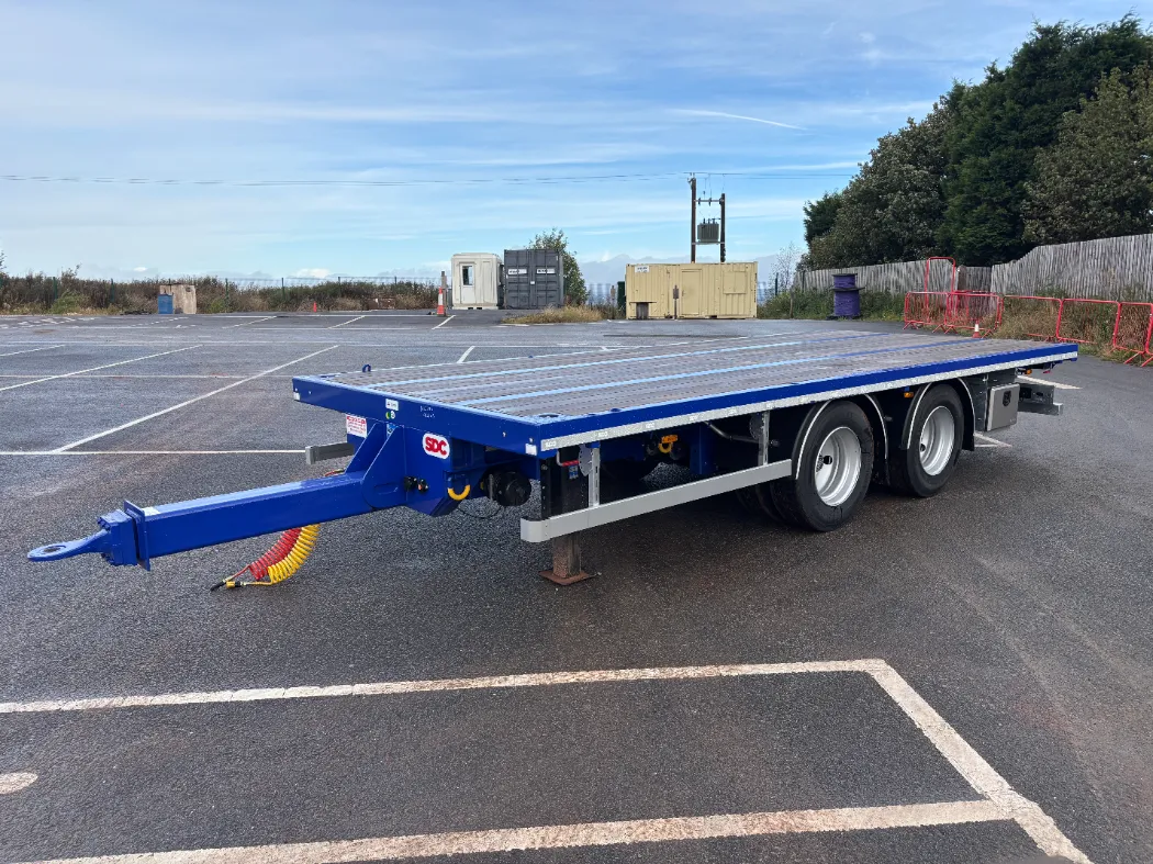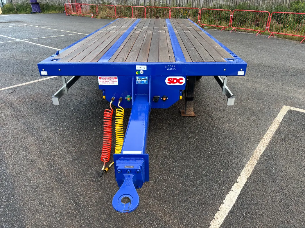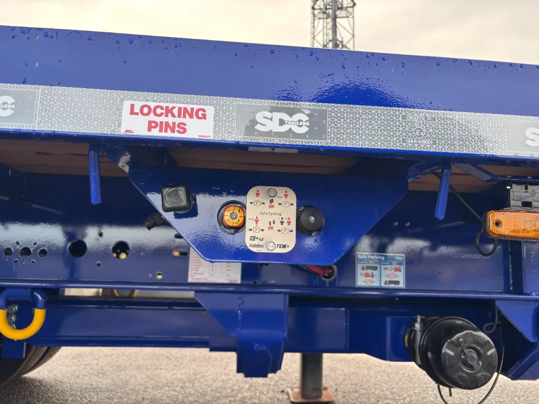 New SDC Tandem axle flat – BPW axles – Extendable neck – 57mm Eye – Lashing rings in the floor – Twist locks for 20ft container – Stainless toolbox – LED lights – Ferry lashing rings – Jost landing leg – IN STOCK.