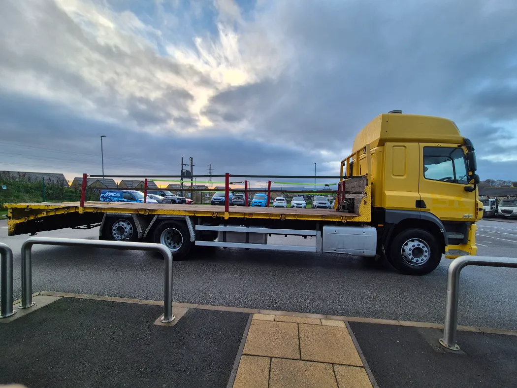 DAF CF 370 – Space sleeper cab – Rear lift and steer – 9T front axle – Auto gearbox – Cheesewedge body – Mesh up the rear ramps – Electric winch – Stainless toolboxes – MOT until February 2026.