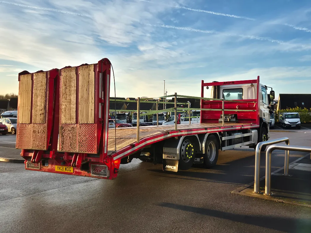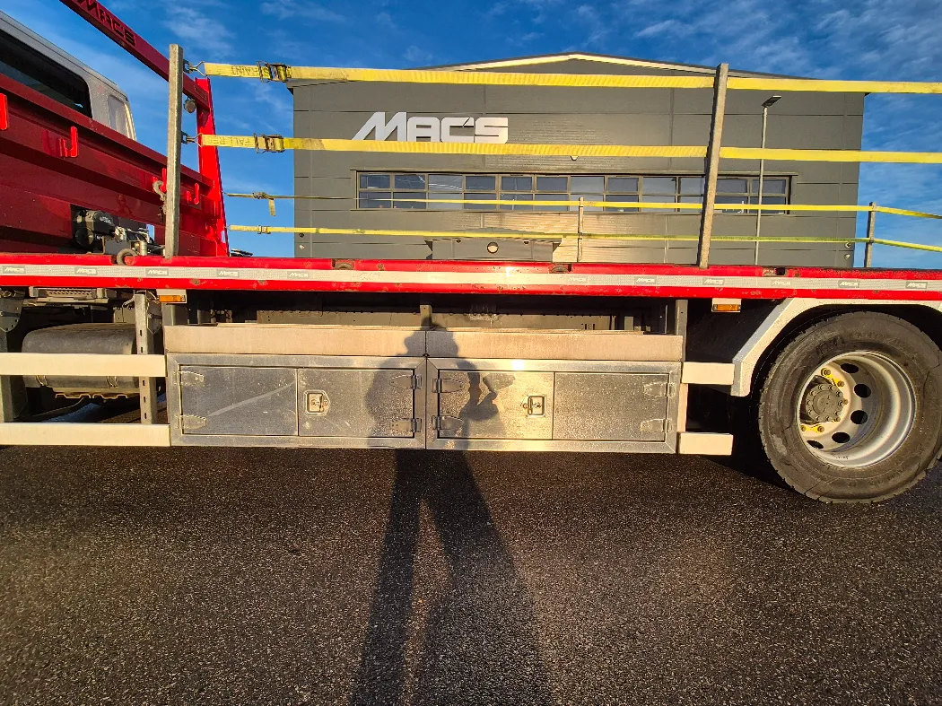 Ex rental fleet full service history – 6x2 – Rear lift and steer – 9T front axle with super single tyres – Rear air suspension – Auto gearbox – 80,000kms – Mac’s beavertail body – Hydraulic flip toe ramps – Stainless toolboxes – Electric winch with remote.