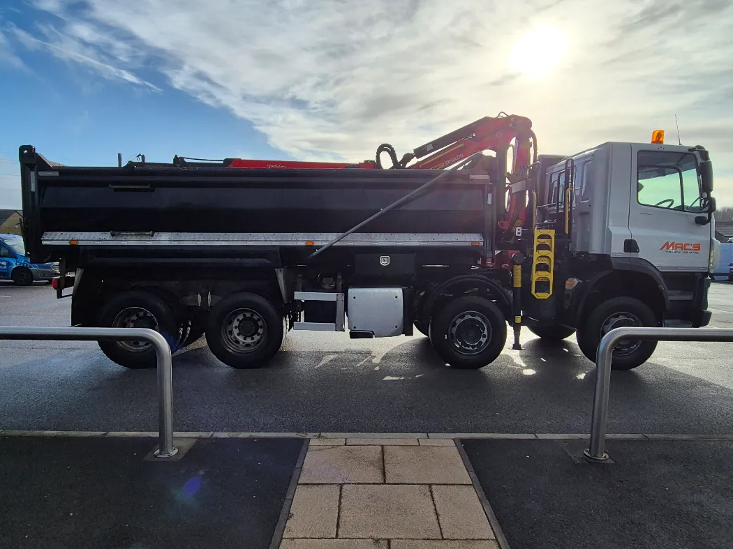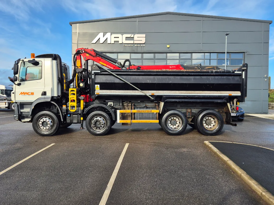 ONLY 63,000kms – CF 450 – 8x4 – Double drive – Auto gearbox – Air con – Palfinger epsilon classis crane – Townend hardox steel tipping body – Rear tow ball and electrics – Wacker carrier – Sheeting system – Toolbox storage – FULL SERVICE HISTORY EX RENTAL FLEET.