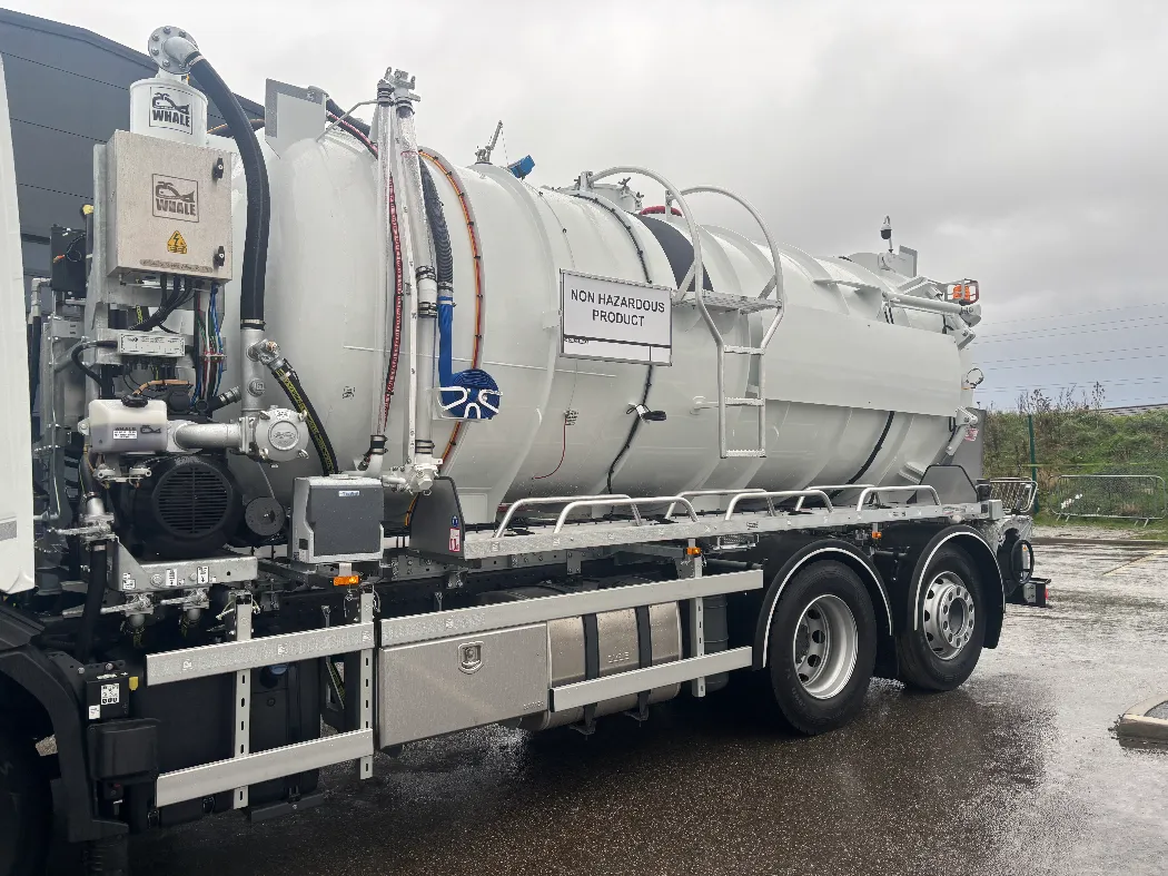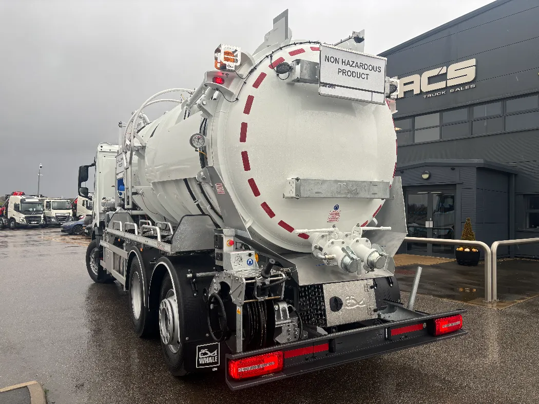 2025/6 DAF XD370 DAY CAB. 6X2. REAR LIFT AND STEER. AUTO. AIR CON. NEW STAINLESS-STEEL, NON-HAZARDOUS WHALE, VACUUM TANKER. 3300 LITRE CAPACITY. MISTRAL PUMP. REAR HIGH-PRESSURE JETTING/WASHDOWN.