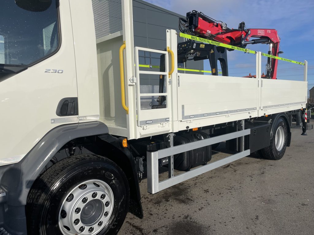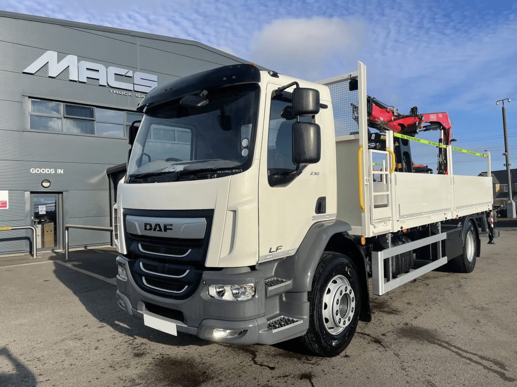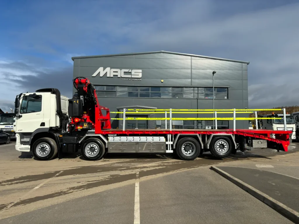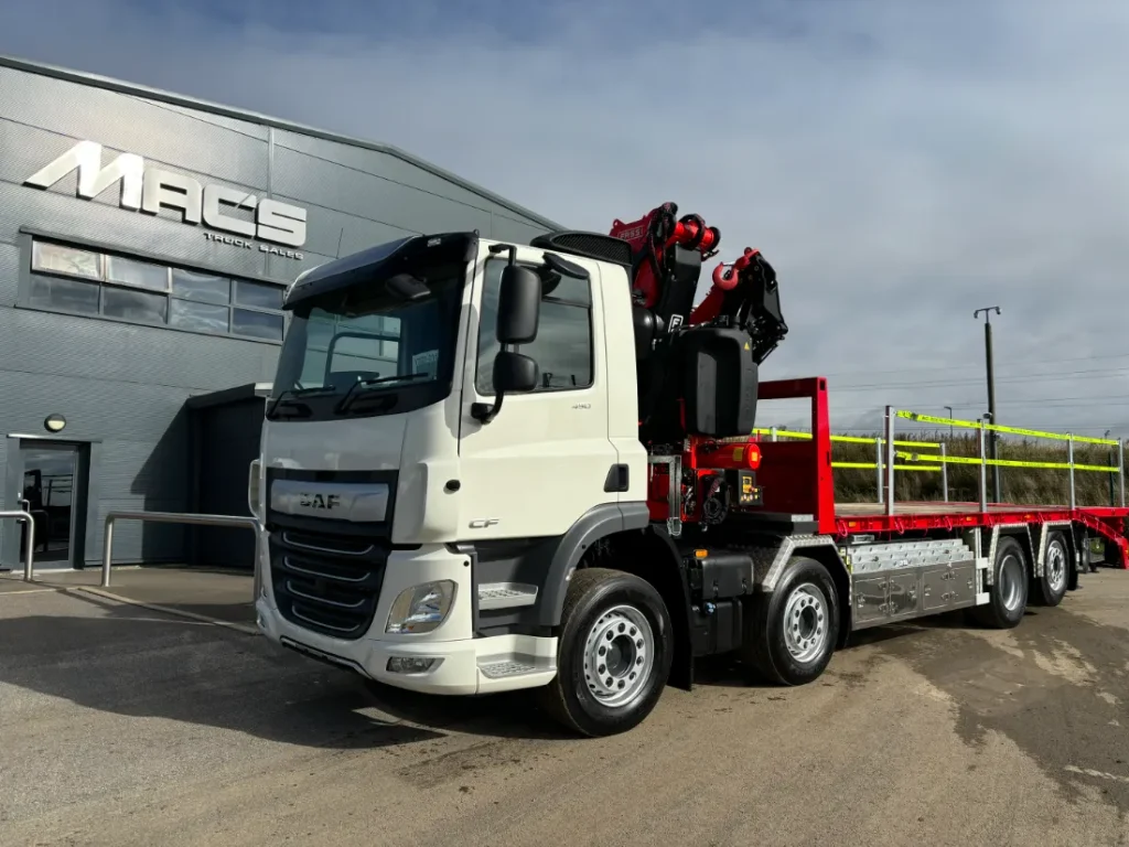 DAF CF 450 – 6x2 – Space sleeper cab – Rear lift and steer – 10T front axle – Sun visor – Air con – Fassi F545RA.2.25 – 5 Hydraulic extensions – Remote control operation – FSC stability control – Mac’s cabin spec body – Hydraulic rear greedy pull out bar – Twist locks – Stainless toolboxes – Large chain wells – Heavy duty headboard – Aluminium mud wings – IN STOCK NOW.