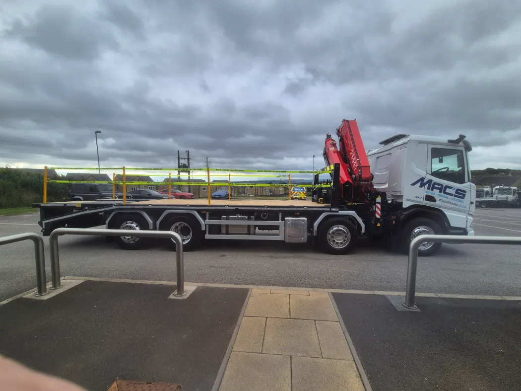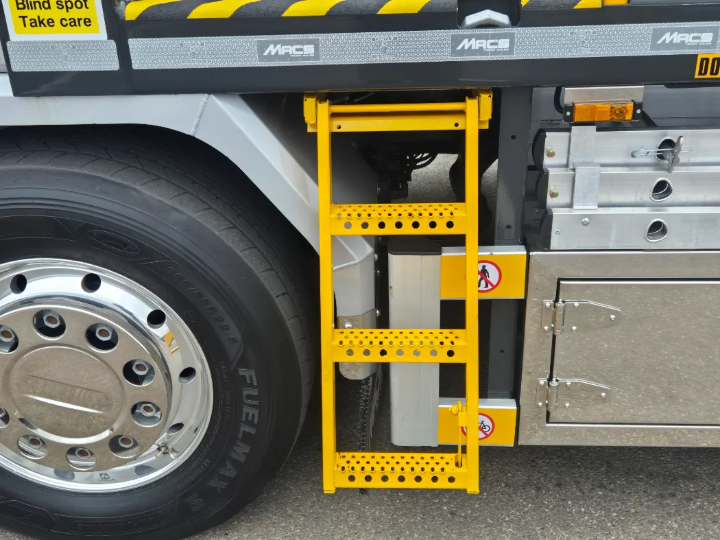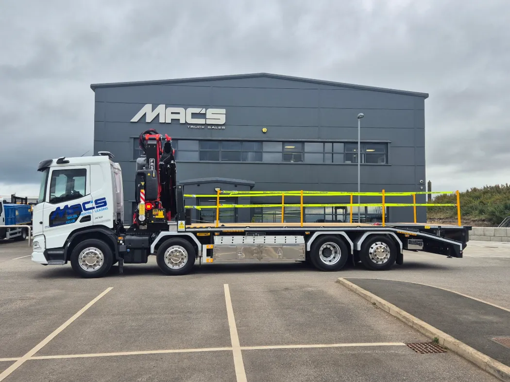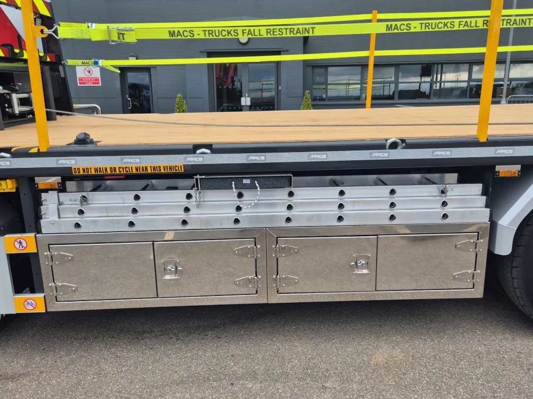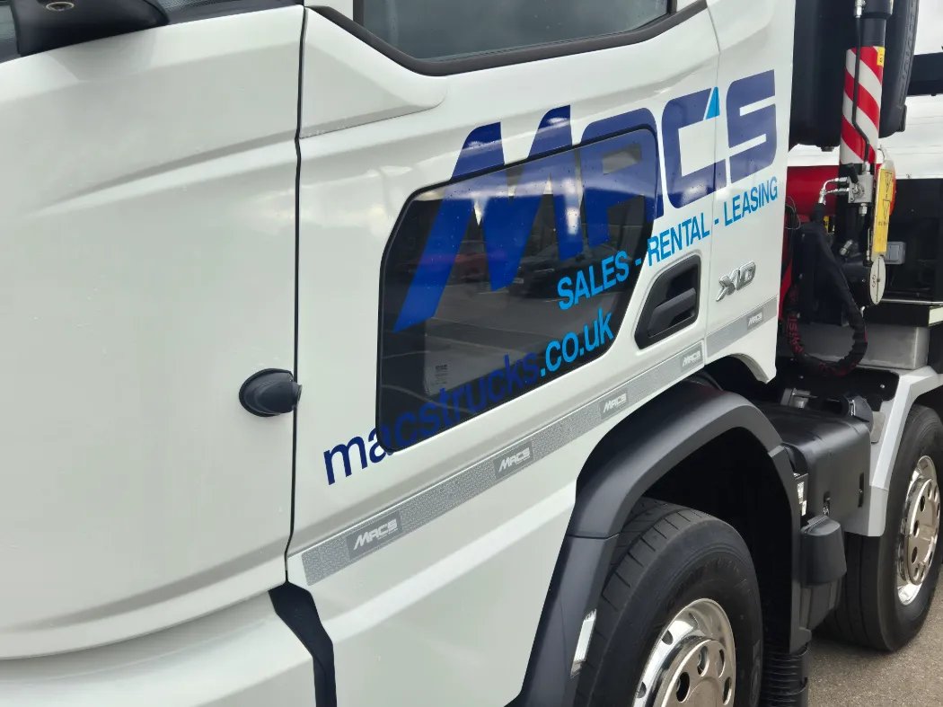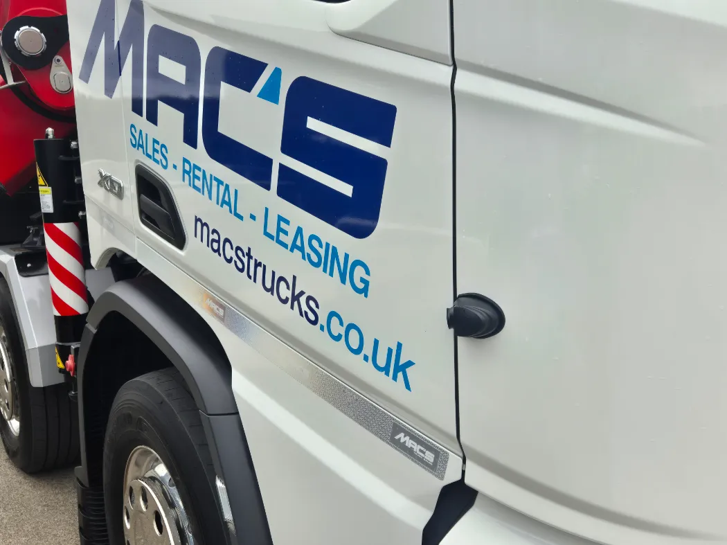 New DAF XD 450 – Day cab – 8x2 – Rear lift and steer – 9T front axles – auto gearbox – Fassi F365A.2.24 – 4 Hydraulic extensions – Remote control – Mac’s cheesewedge body – Hydraulic bi fold ramps – Stainless toolboxes – 3 stage ladder stowage – Chain wells – Fall restraints straps and stowage – Winch – Working lights – IN STOCK READY NOW!