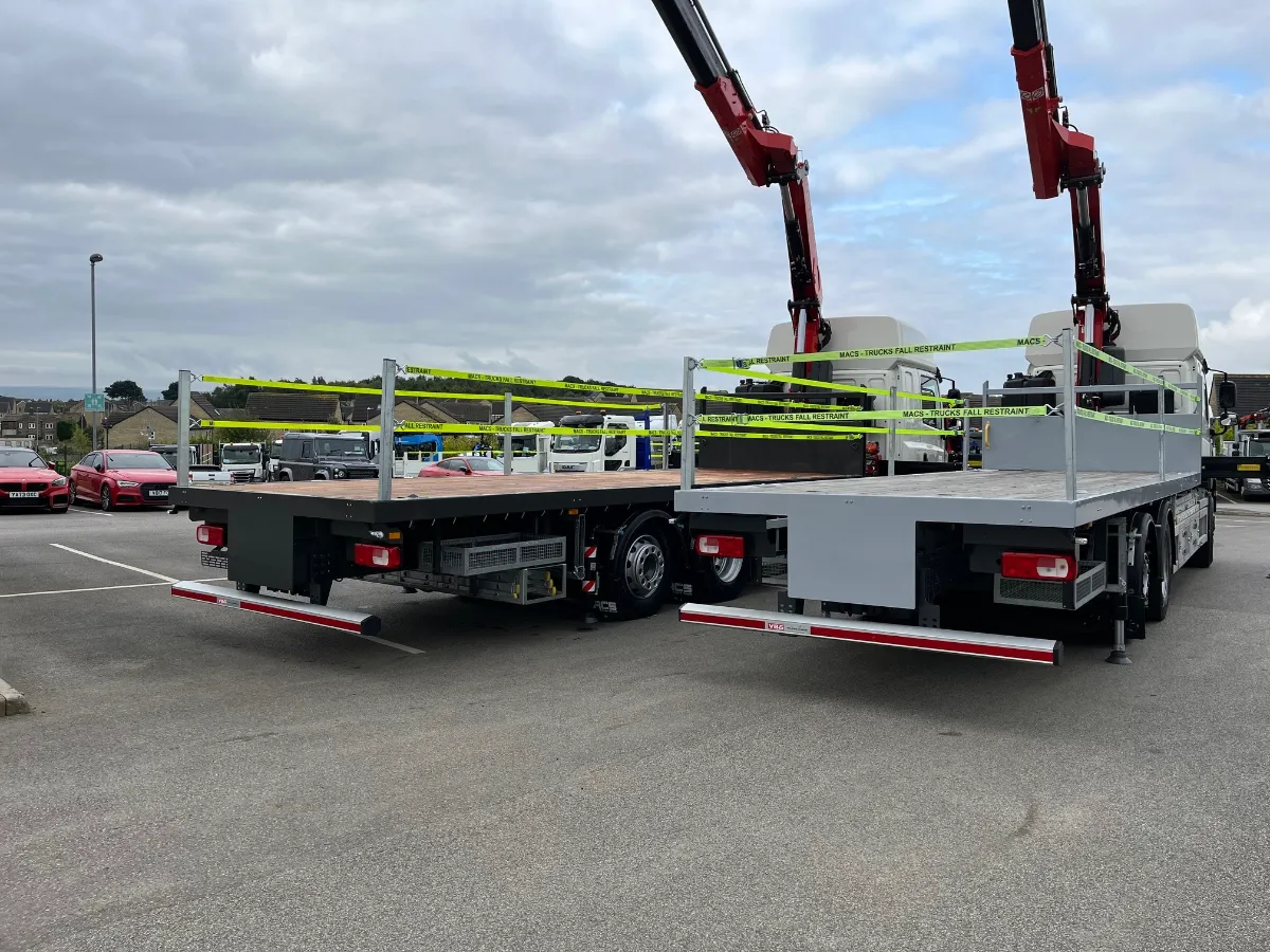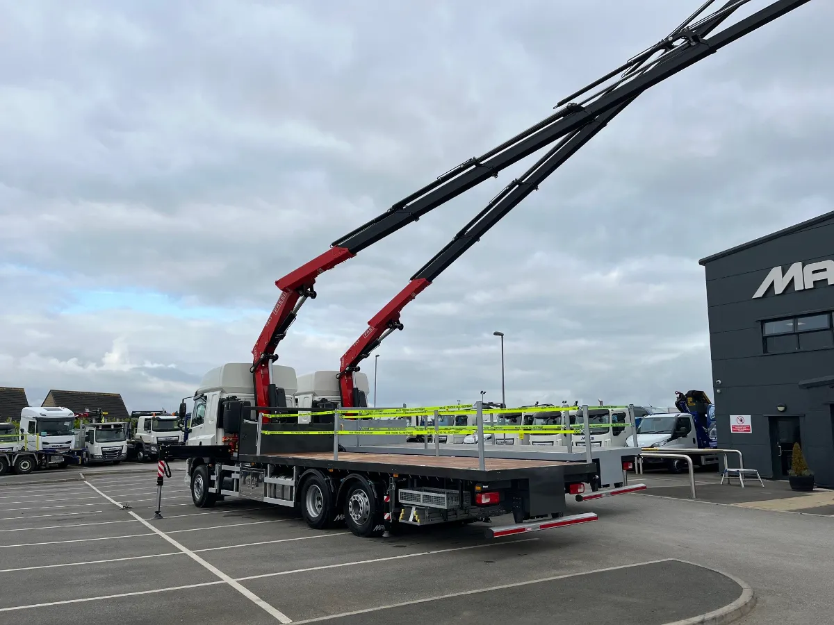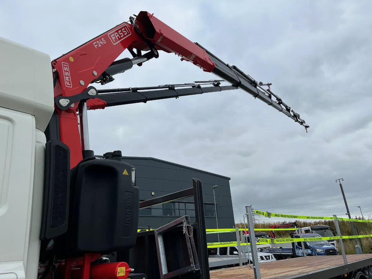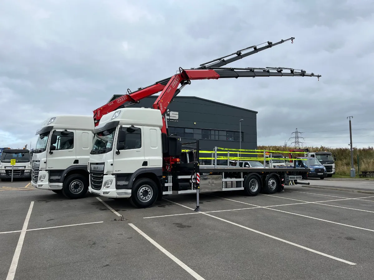 X2 Available! 2024 DAF CF320 space cab sleeper - 9t front axle - Auto Gear Box - Air conditioning - Fitted Fassi F245a.2.28 remote crane. 8 hydraulic extensions. 440kg @ 20.90m - New Flat body with fall arrest - toolboxes - lashing points plus so much more - We have a range of finance options to suit your business. In stock and ready to go now!