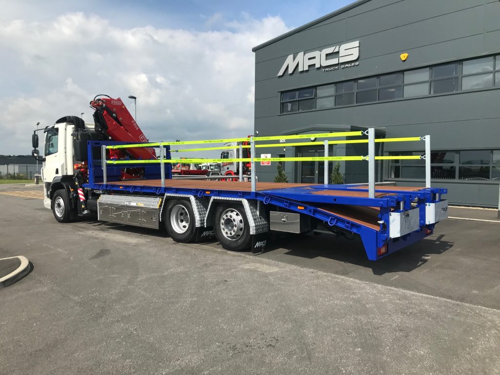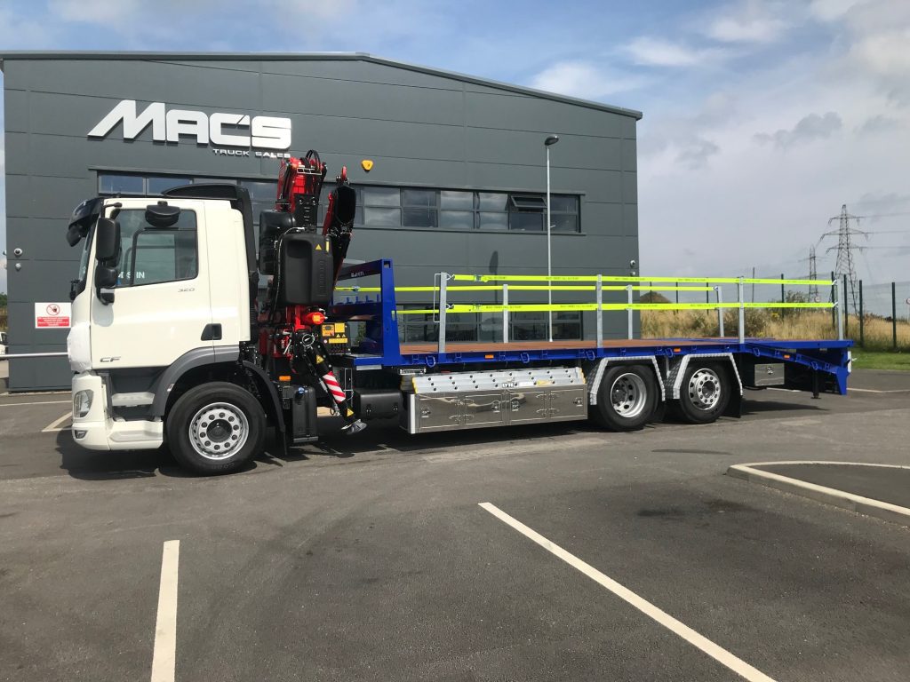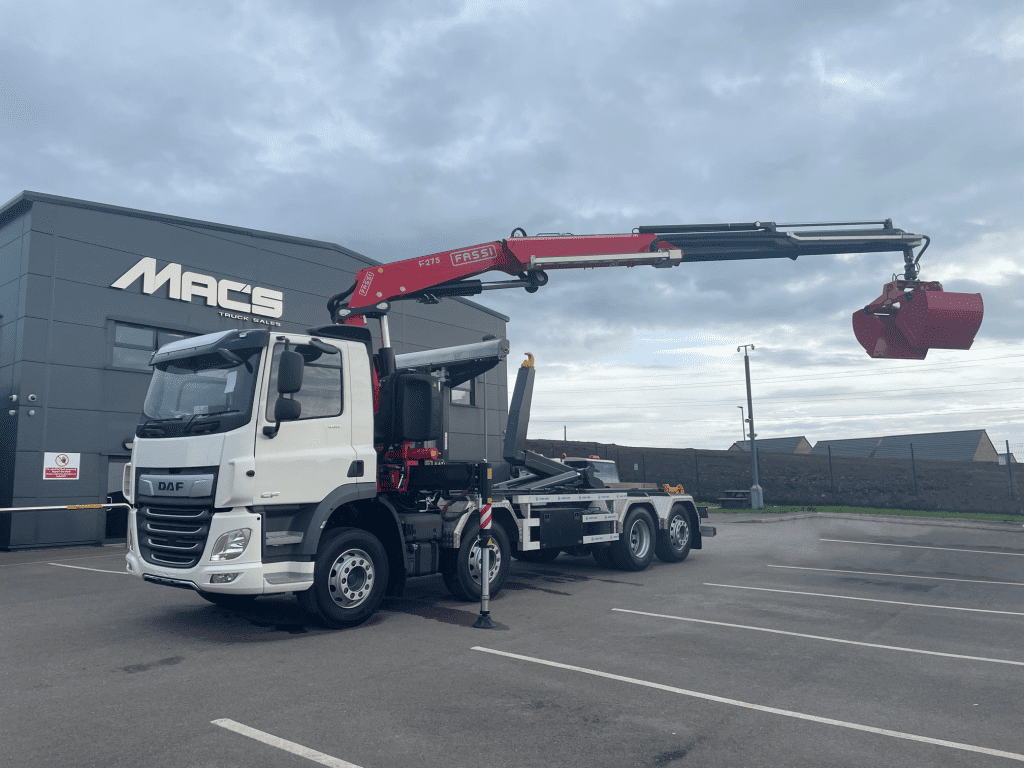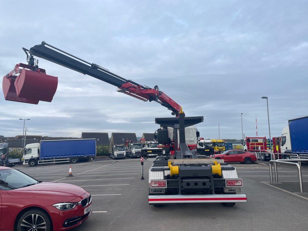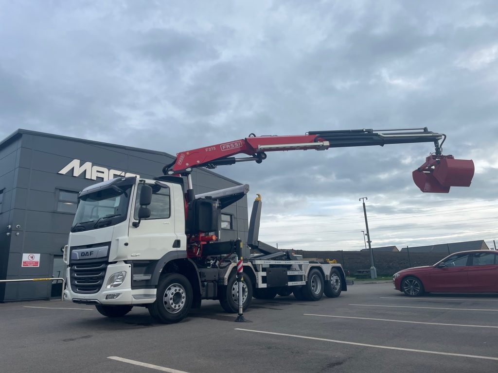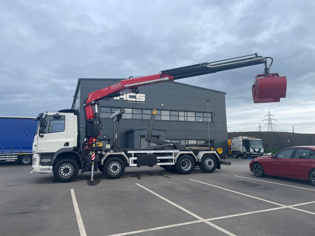 New DAF CF 450 – Space sleeper cab – Auto gearbox – Fassi F485A.2.25 – 5 hydraulic extensions – remote control operation – Mac’s cabin spec bodywork – Twist locks for 20 and 24ft containers – Hydraulic rear greedy bar – Stainless toolbox storage – Heavy duty headboard – Wide load marker boards – CHASSIS IN STOCK TO BUILD TO YOUR SPEC.