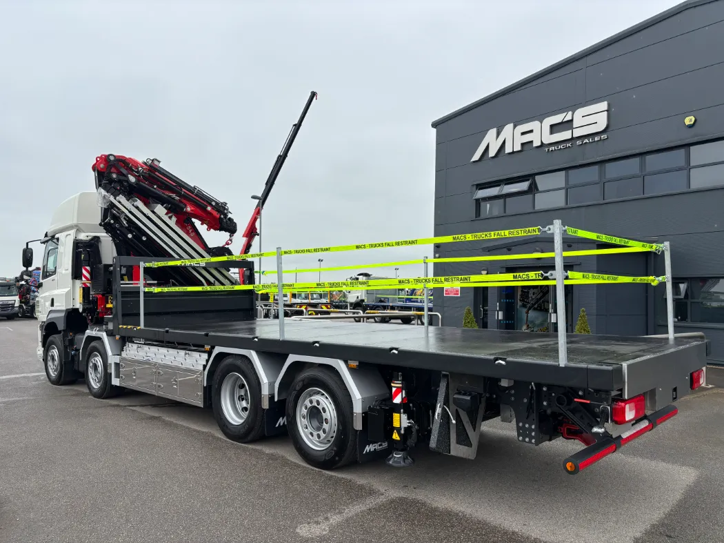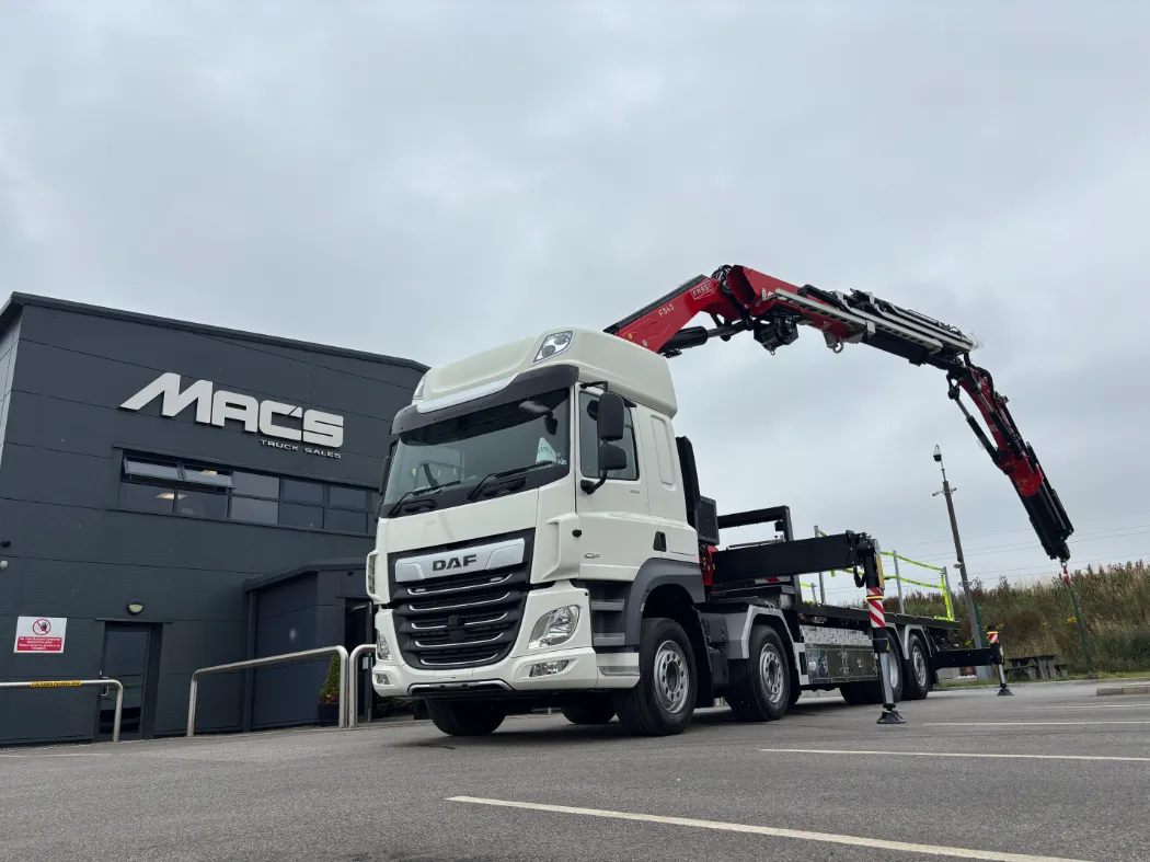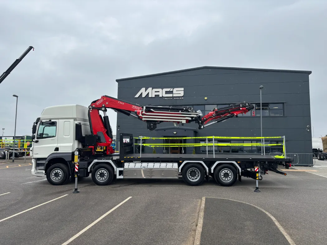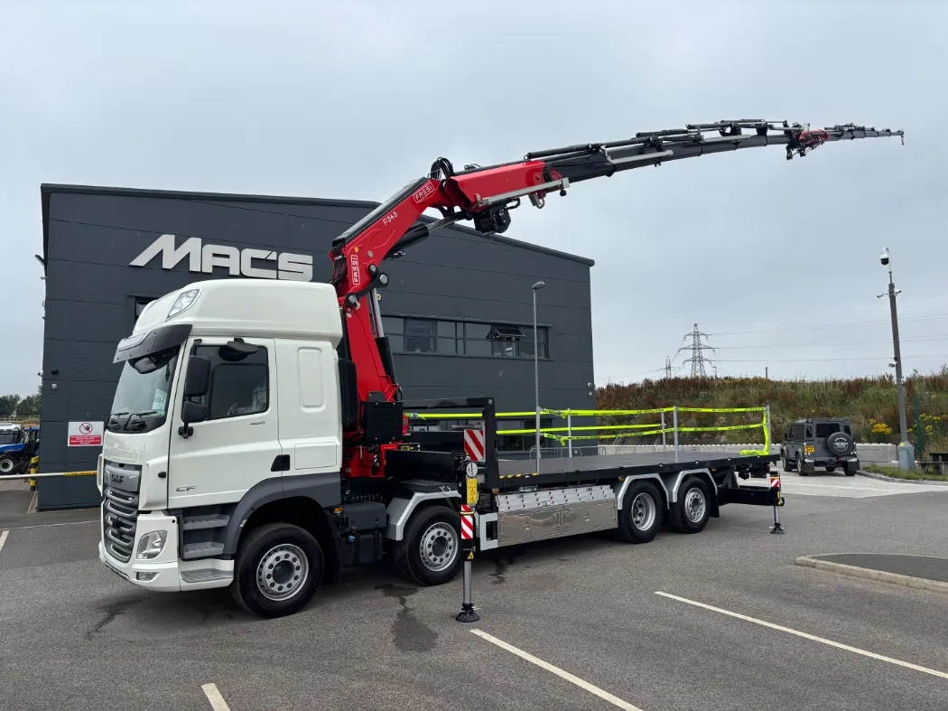 DAF CF 480 – Space sleeper cab – 8x2 – Rear lift and steer back axle – Auto gearbox – Fassi F545RA.2.26 with L426 fly jib – 28M reach – V20 winch – Remote control operation – Stainless toolboxes – Aluminium mud wings – Hydraulic extending back end – Stainless chain wells – Galvanised headboard – 3 Stage ladder storage – Wisa deck flooring – Fall restraints – IN STOCK READY TO GO.