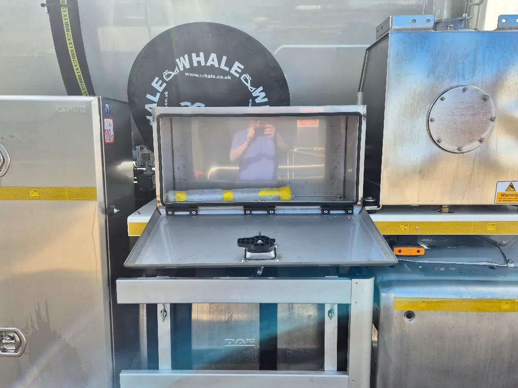DAF CF 370 – 6x2 – Day cab – Rear lift and steer back axle – Manual gearbox – Kilowhale tanker body – High pressure jetting – 1000CFM Kaiser vacuum system – Front tipping body – Hydraulic opening back door – Hydraulic back bumper bar – Remote control hydraulic boom – 2600 Gallons total with 1000gallon clean jetting water – Toolbox storage – In stock READY NOW.