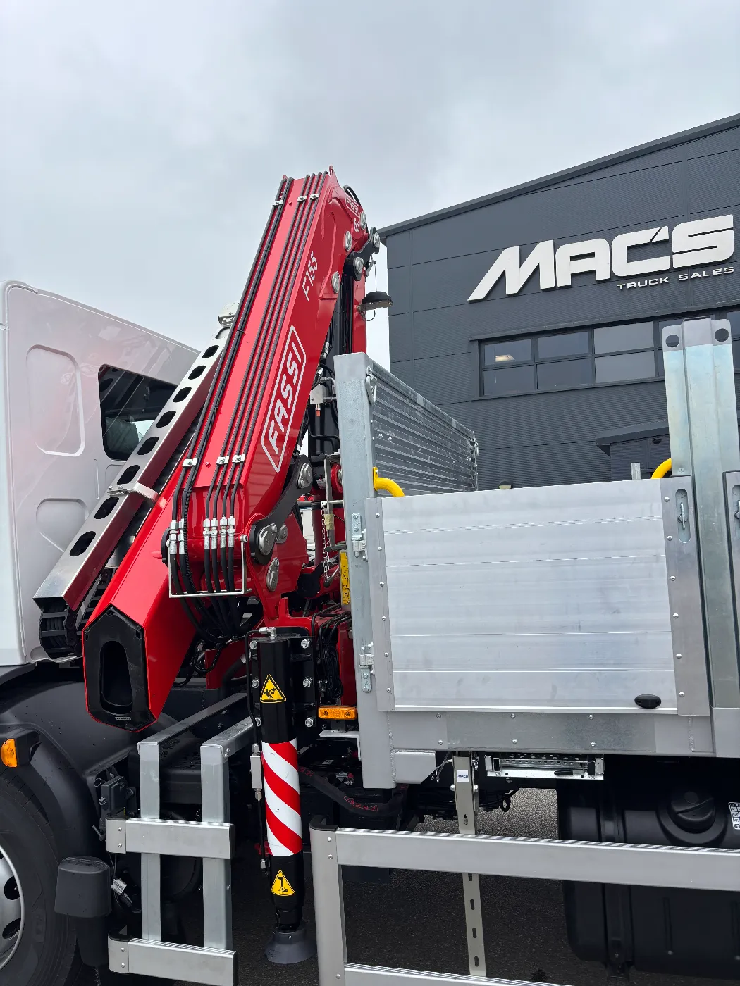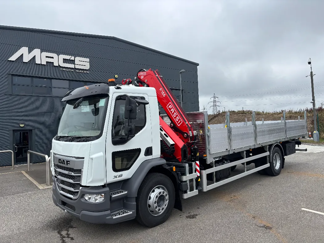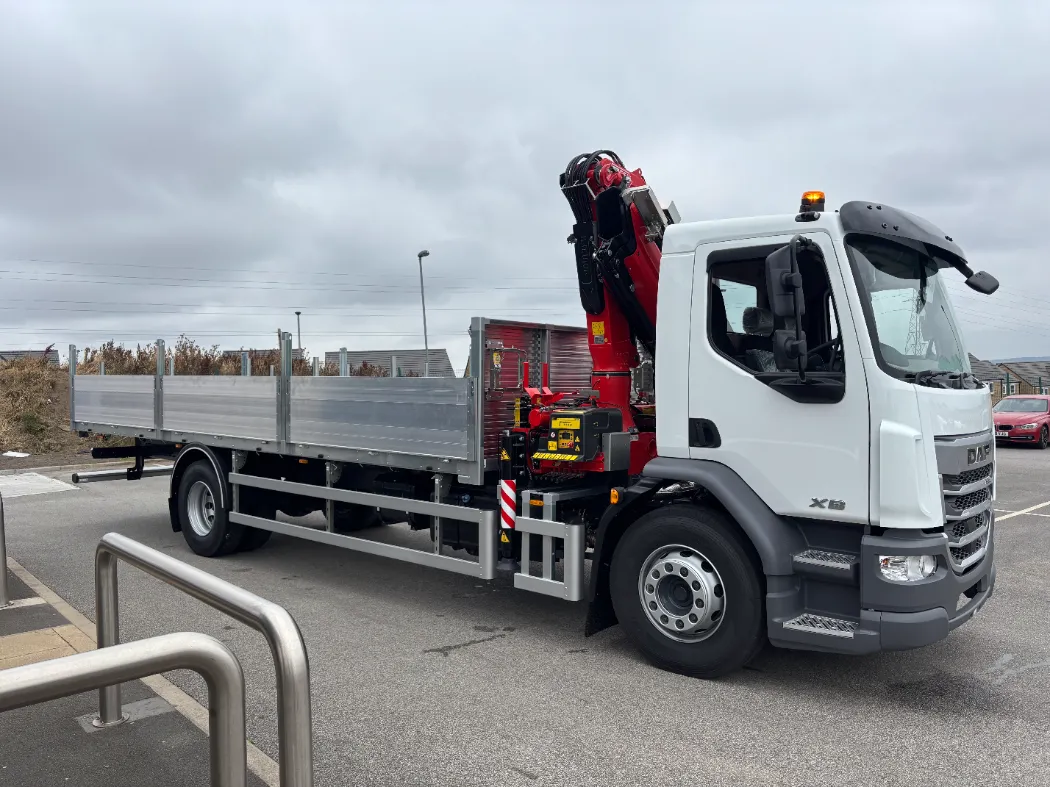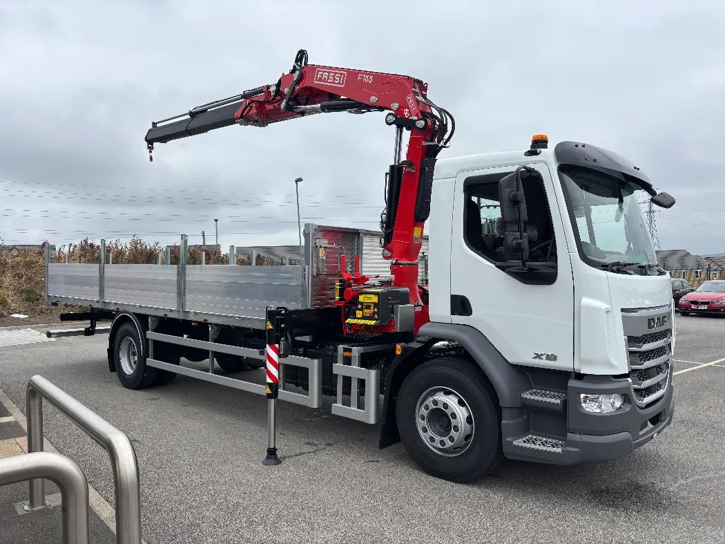 2025 – DAF XB 260 – 18 ton – Day cab – Auto – Air con – Fitted FASSI F155A2.22 crane – 8.25 meters reach lifting 1750kg – Fitted triple Alloy dropside flat body with Scaffolding pockets – Fall restrain posts – Tool box – Ring for full details.