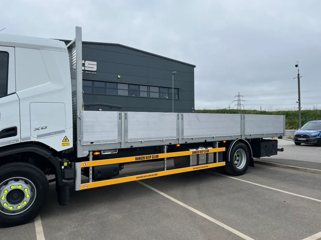 XD 260 18T chassis – Auto gearbox – DVS rated 3* from factory – 3 seats inside the cab – 24ft scaffold spec body – Aluminium dropsides – Body access to the front of the body – Scaffold pockets – Toolbox storage – Cab high headboard – Bamboo wood flooring – Toolbox storage.