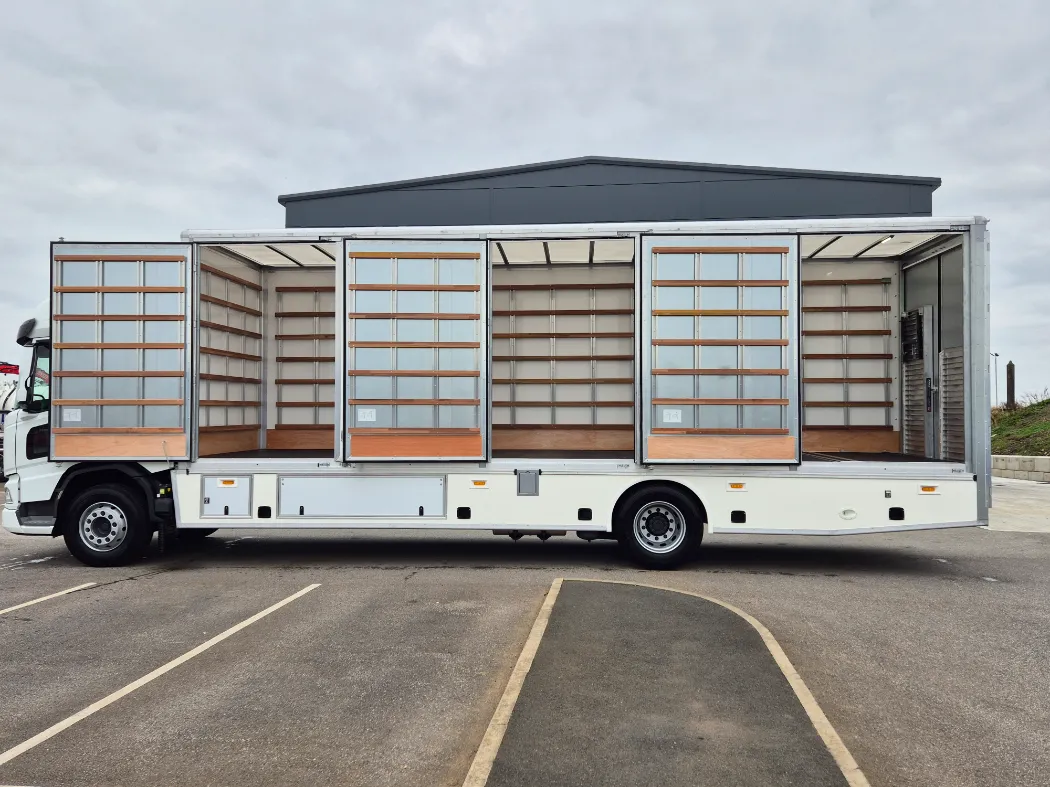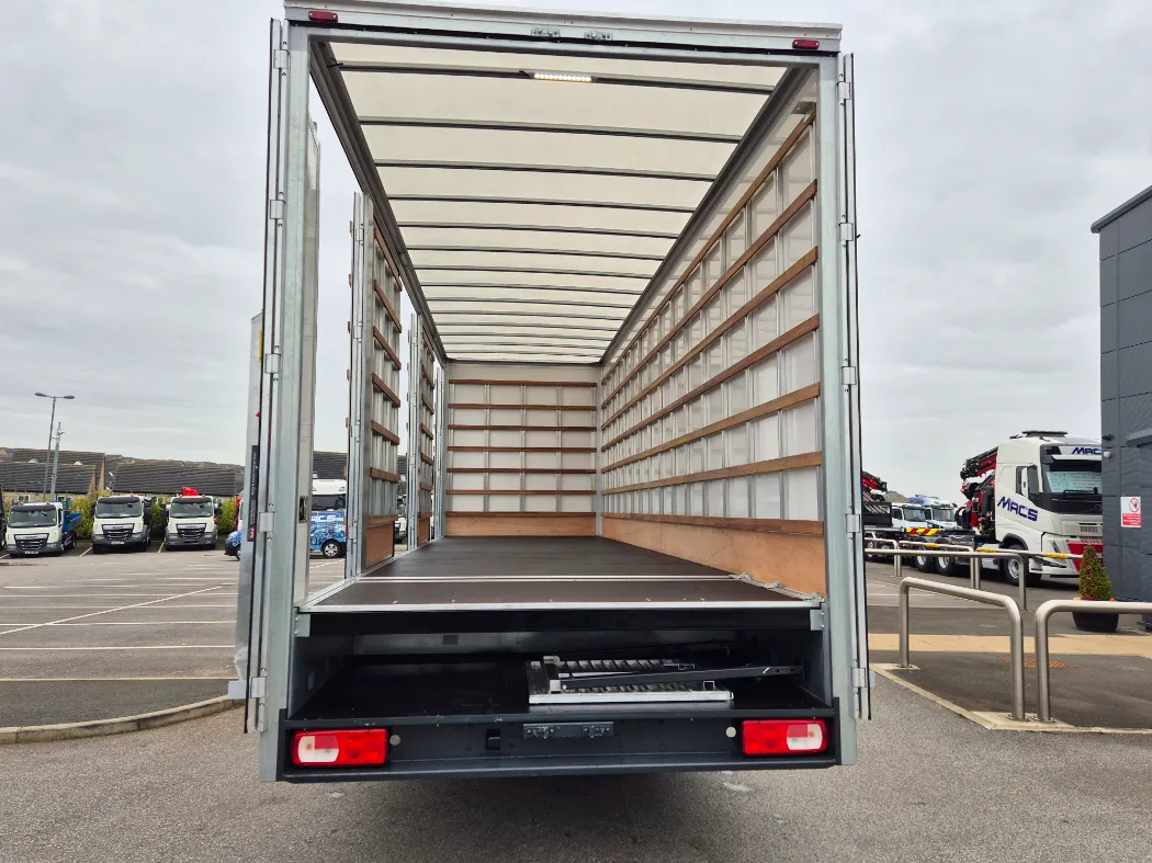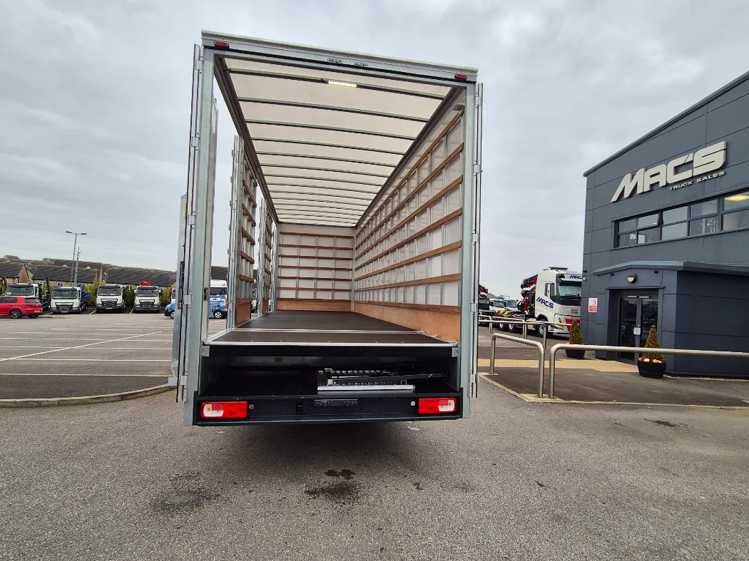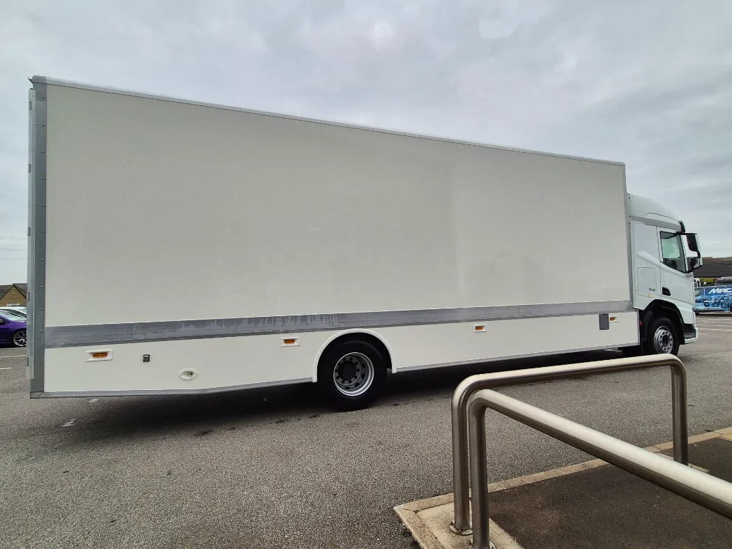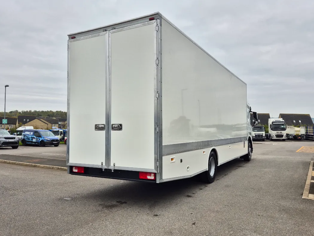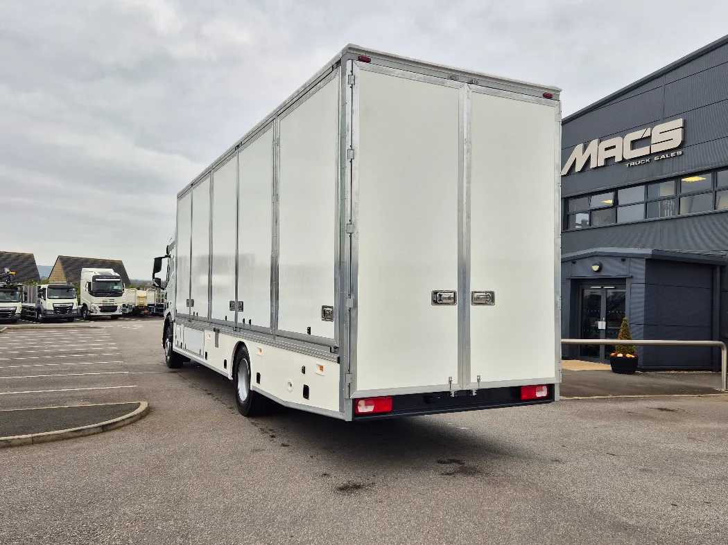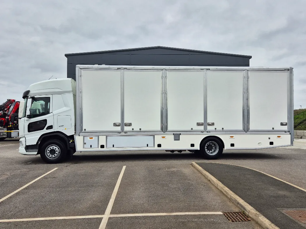 DAF XD 310 – Space sleeper cab – 18T GVW – Twin sleeper cab – Rear air suspension – 6.6M wheelbase – Auto gearbox – Fridge in cab – Night heater – 3* DVS rated cab for London – Mac’s 5 container body – Internal tie rails – Underbelly storage – Working lights above the doors – Aluminium tables and ramps to go off any door – Rear drop well with false floor – Ready to paint your colours.
