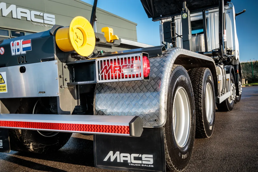 DAF XDC 450 – 8x4 – Double drive – Auto gearbox – Option of mirror cam system or standard wingmirrors – Vison window in the door – Construction spec with heavy duty front bumper – VDL 25T Hook equipment – Hydraulic side extending sheeting system – Internal cab controls – Ally chequer mud wings – Rear light guards – IN STOCK READY TO GO.