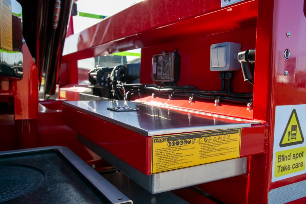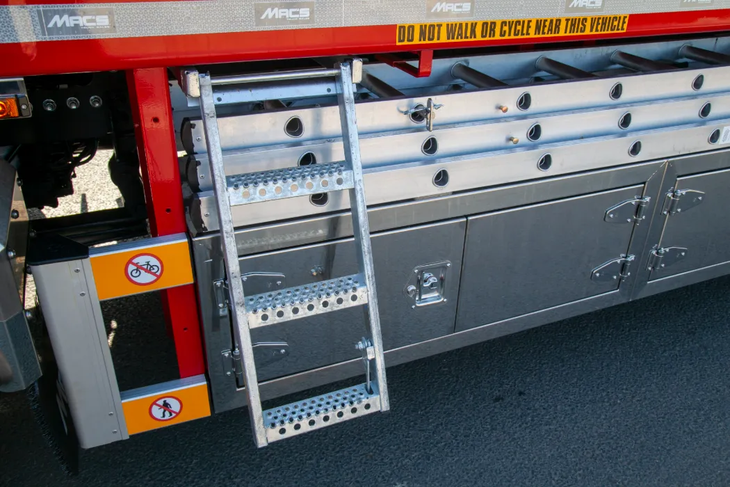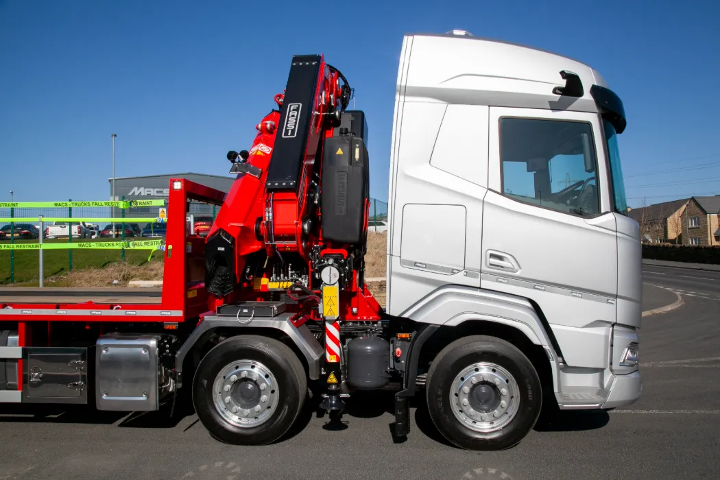 New Shape DAF XF 480 - 8x2 with rear steer axles – Super single tyres – Auto gearbox – Choice with and with out mirror cam systems – Fridge inside the cab – Option for microwave – Fassi F545RA.2.25 – 5 Hydraulic extensions – Remote control – Mac’s new cheesewedge body – Patented side raves with lashing points inset – Stainless mud wings – Stainless toolboxes – Stainless trays – Heavy duty headboard – Keruing hardwood planks – Winch – Options for additional lighting – Always in build call for more info.