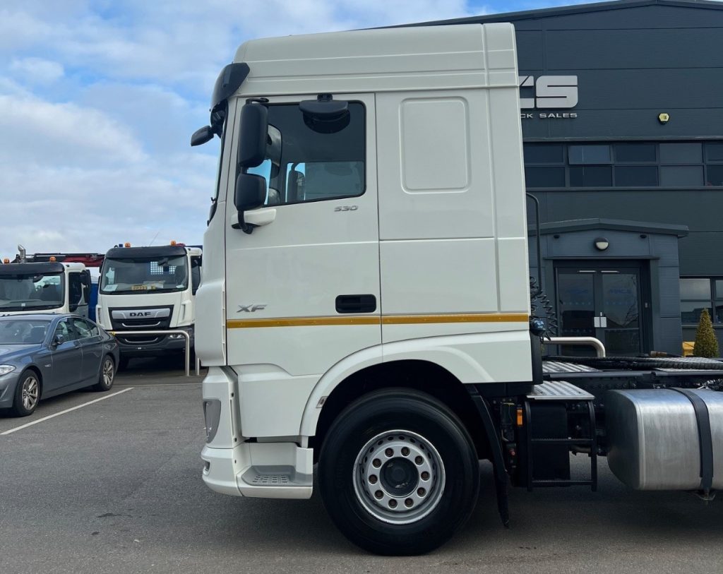 DAF XG 530 – 6x4 – Double drive – Rear air suspension – 9T front axle with super single tyres – Automatic gearbox – 3inch heavy duty 5th wheel – Mirror cam system – Sun visor – LED lights – Vison window in the passenger door – Top spotlights - Frdige under the bunk – Twin bunk - Top storage cabinets – External cabinets – IN STOCK READY TO GO.
