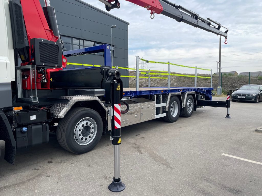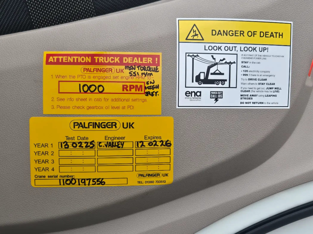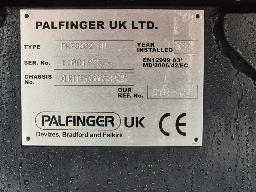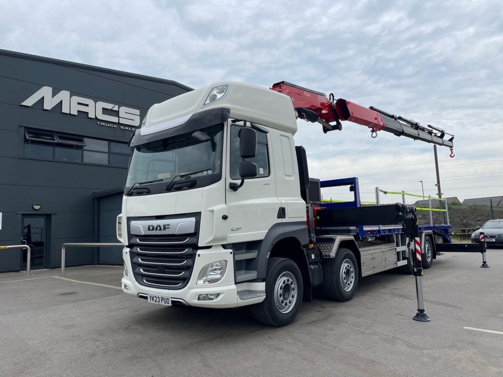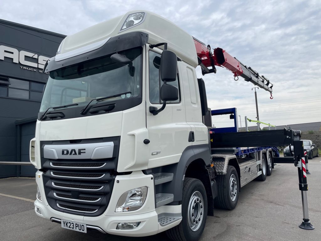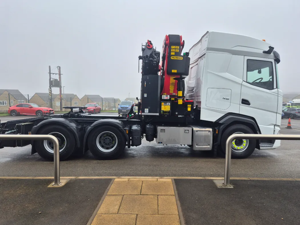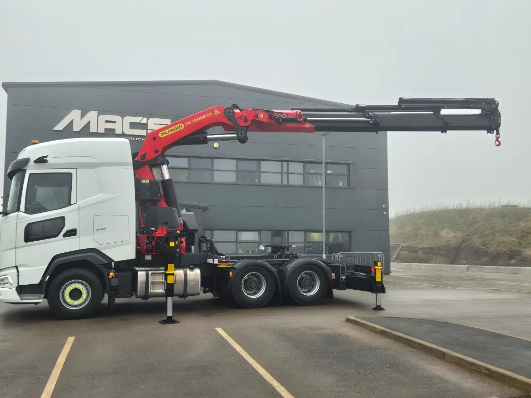 New DAF XG 530 – 6x4 – Double drive – Capable of special types – Mirror cams replacing classis wing mirrors – Auto gearbox – Palfinger 78tm – 6 Hydraulic extensions – Remote control operation – Continuous slewing – Spreader pad storage – Body access ladders – Service rails – Avilable for hire or rent to buy.