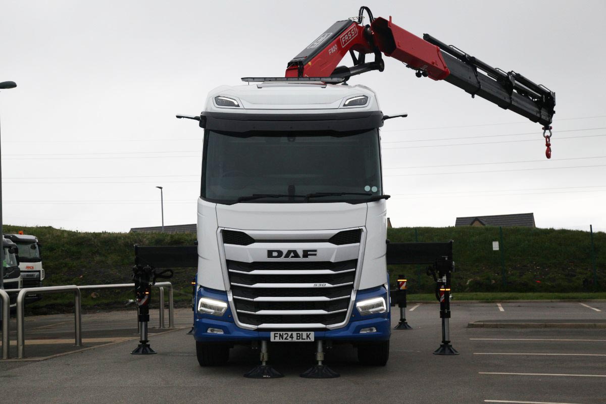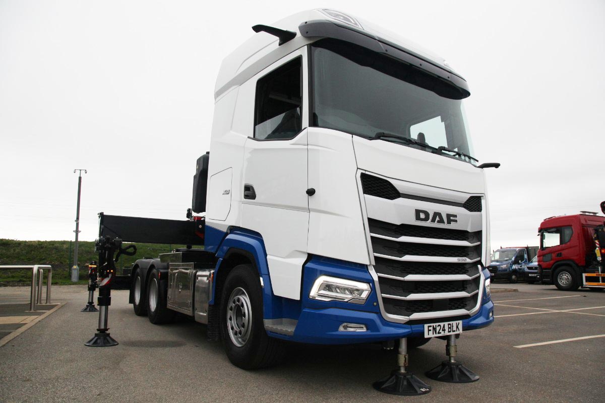 DAF XG 530 – 6x2 – Twin wheel tag – Mirror cam set up – Auto gearbox – Fassi F905RA.2.26 – 6 Hydraulic extensions – Remote control – Front crane Legs hidden behind the front grill – Fully remote controlled legs – Mac’s Subframe – Stainless toolbox storage with trays – Chequer plate catwalk – Rear VBG fitment – Demountable body option