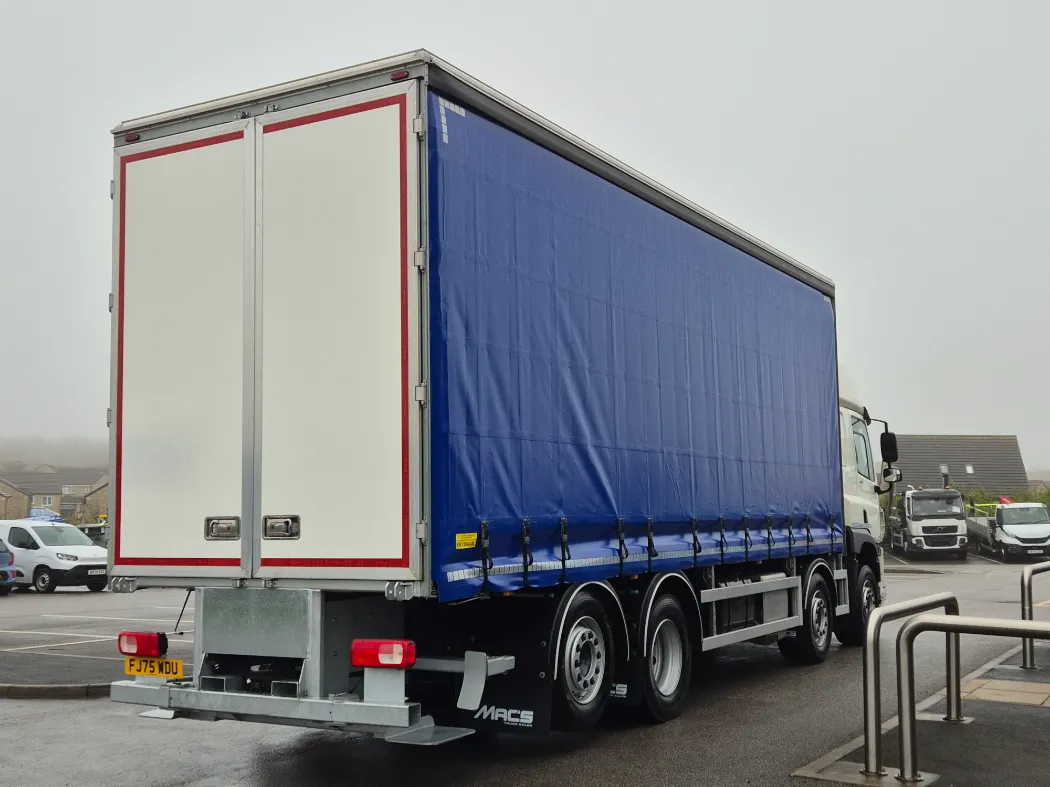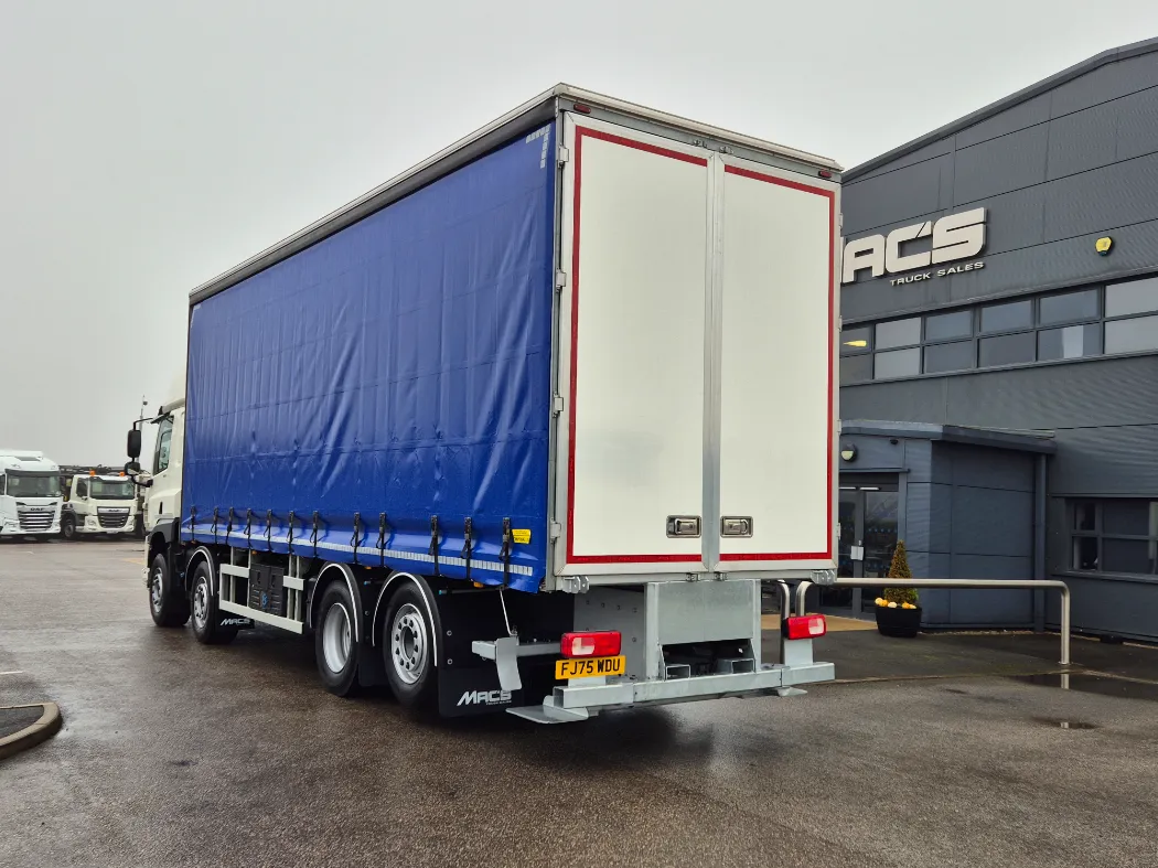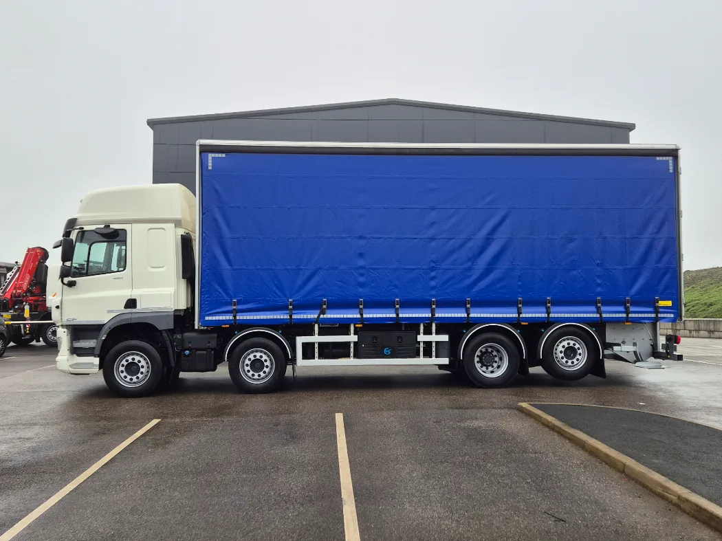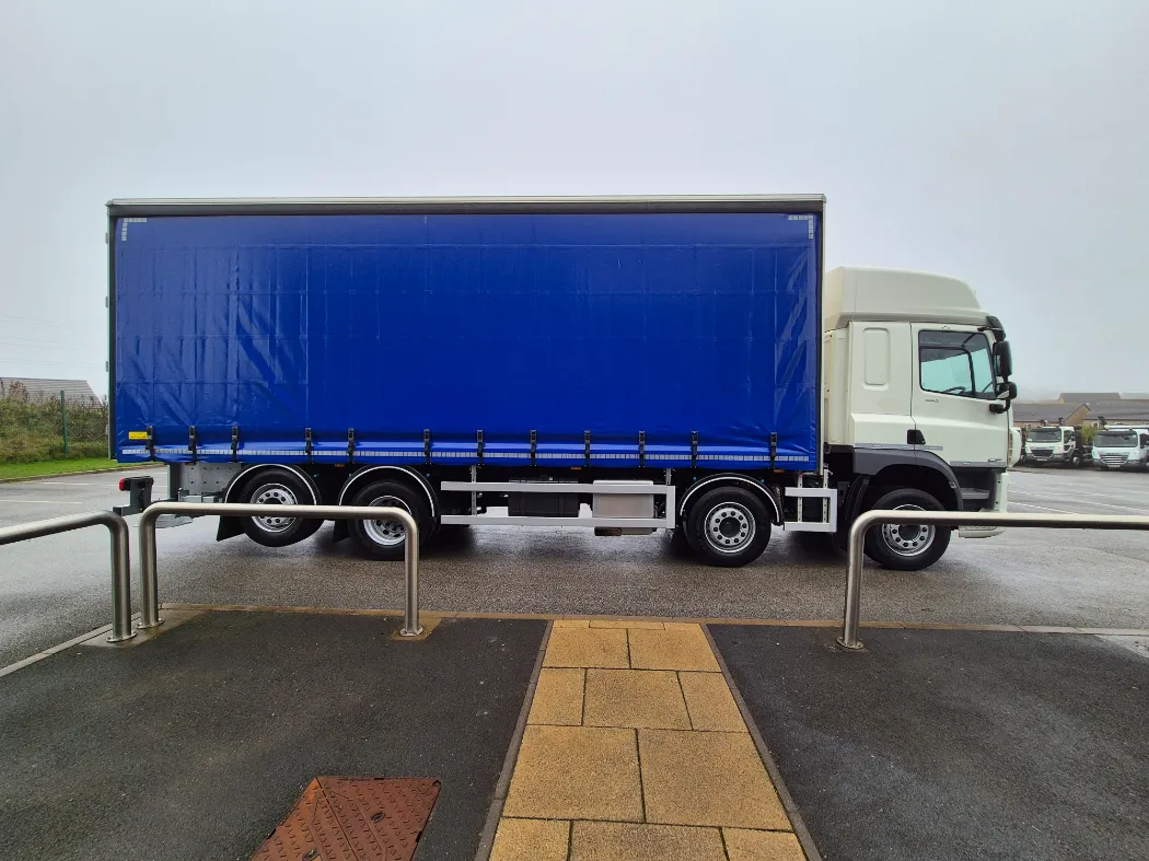 DAF CF 450 – Space sleeper cab – Rear lift and steer – Auto gearbox – Rear air suspension – Curtainside body 8.3M internal bed – 2.8M through the curtains – Universal moffet carrier – Barn doors – IN STOCK READY TO GO
