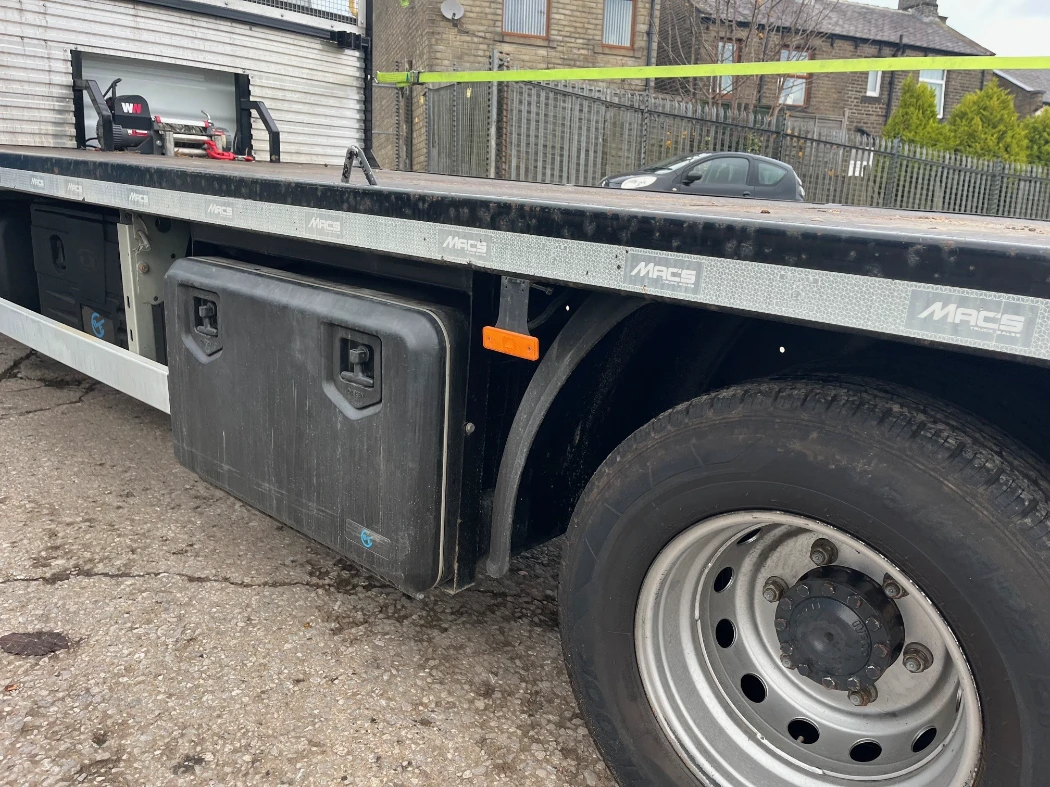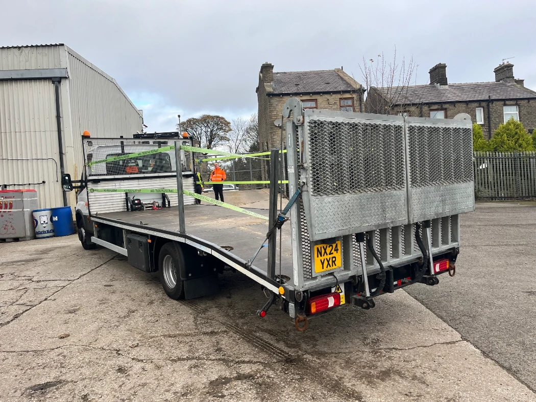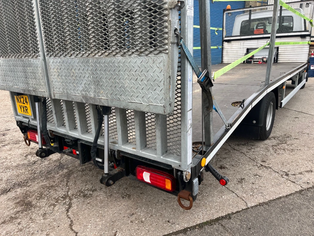 Iveco 7.2T – Hydraulic flip toe ramps – Metal grated mesh to the ramp surface – Electric winch – Fall restraints – Lashing points in body floor – Auto gearbox – 3 seats inside the cab – Currently on 49,000kms.