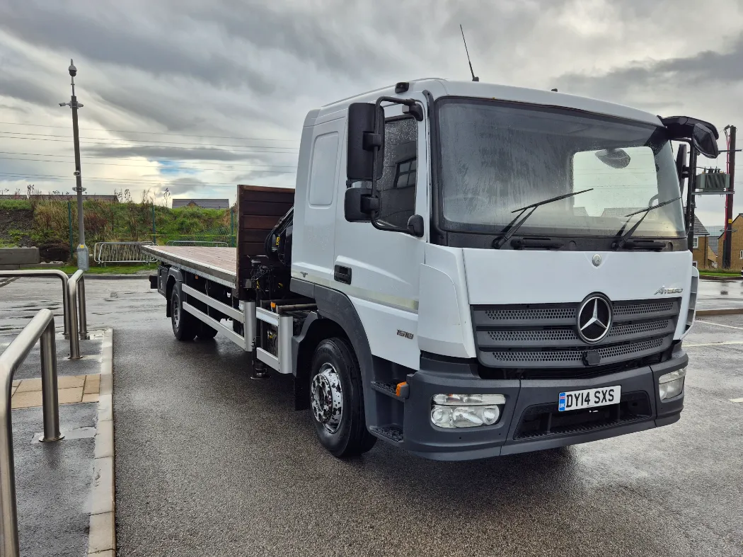 2014 Mercedes 1518 – Sleeper cab – Fitted Hiab XS088B2 crane with remote control – 7.30 meters reach lifting 1080kg – Heavy duty flat body – Very clean for the year .