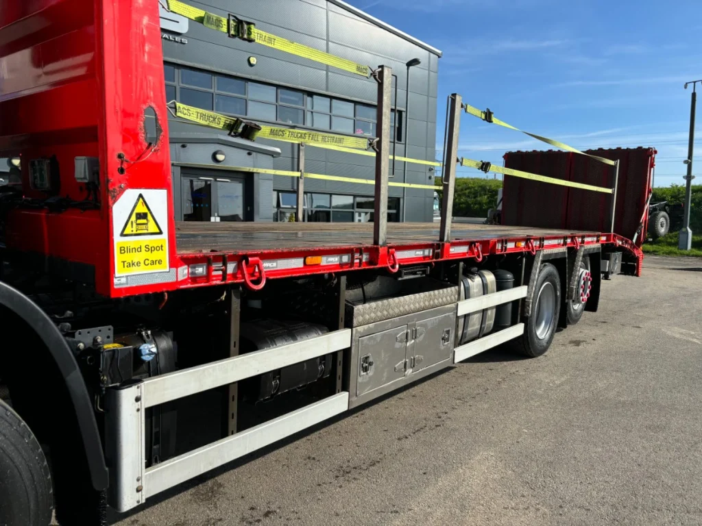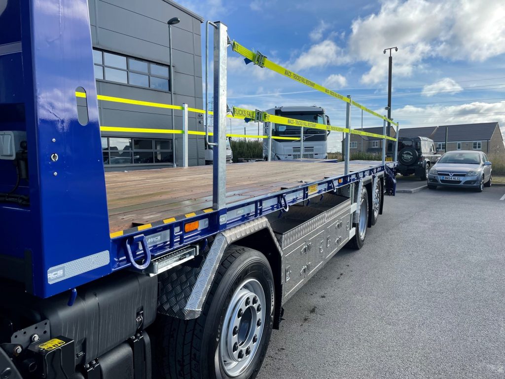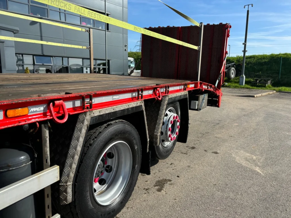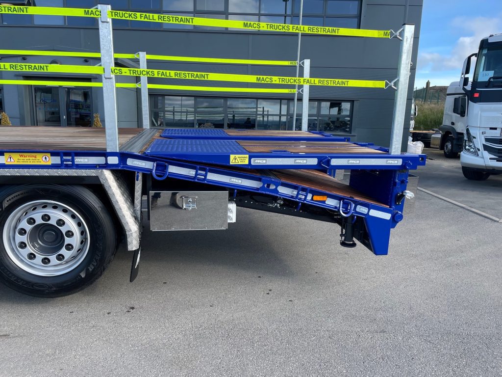 New Mercedes Arocs - 3246 - 8x2 - Rear lift and steer - Mirror cam system replacing the wing mirrors - Auto gearbox - Mac's heavy-duty beavertail body - Hydraulic flip toe ramps - Hydraulic landing legs - Stainless toolboxes - Ally chequer mud wings - Fall arrest straps and posts - Winch under heavy-duty cab high headboard - IN STOCK NOW.