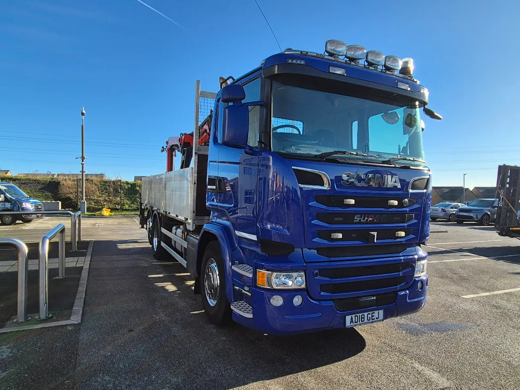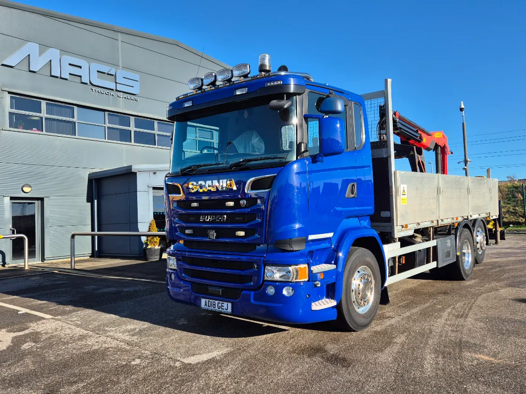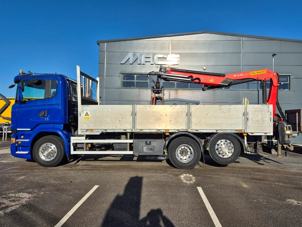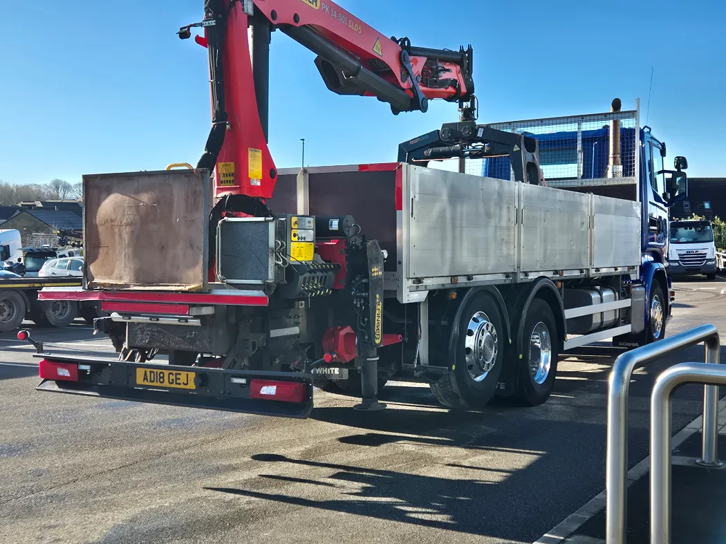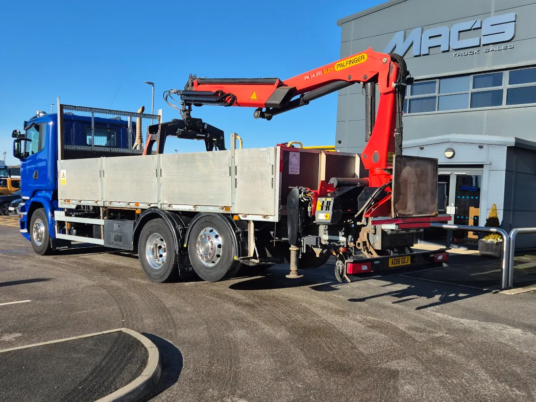 Scania R450 – 6x2 – Rear steer – Auto gearbox – ONLY 206,000kms – IMMACULATE inside and out – Palfinger rear mounted crane – 2 Hydraulic extensions – Remote control – London DVS ready – Drawbar hitch under back end – Kinshoffer brick grab – MOT until DECEMBER 2026.