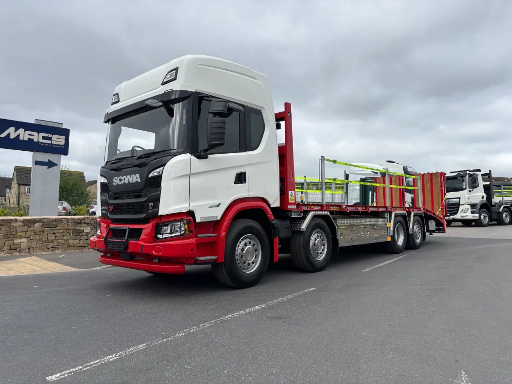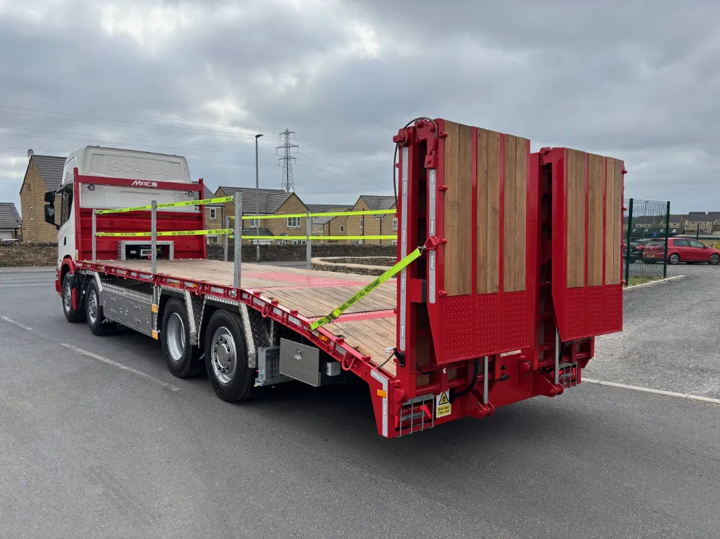 2025 Scania P500 – 8x2 – P cab highline sleeper – Auto - 9T front axles – Rear lift and steer – Fitted Macs low profile plant body – Hydraulic flip toe ramps – Lashing rings – winch with remote – Choice available in different colours – Ring for full details