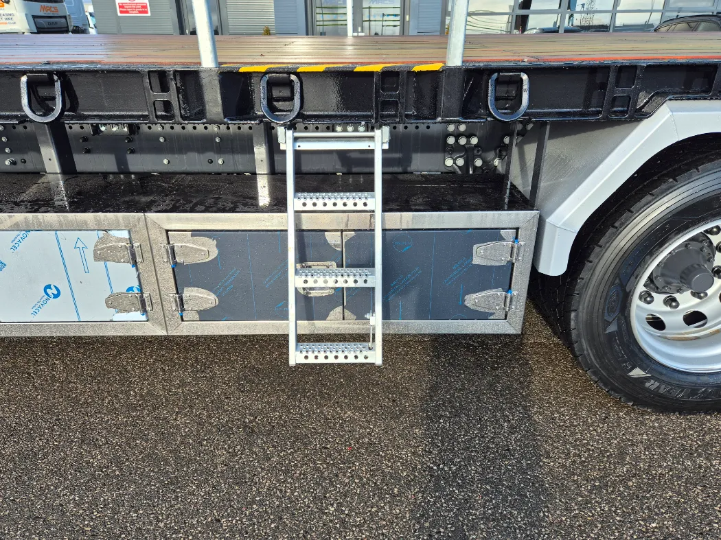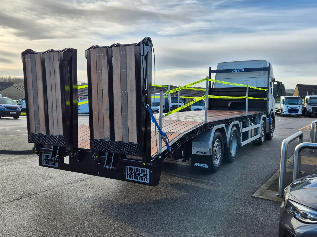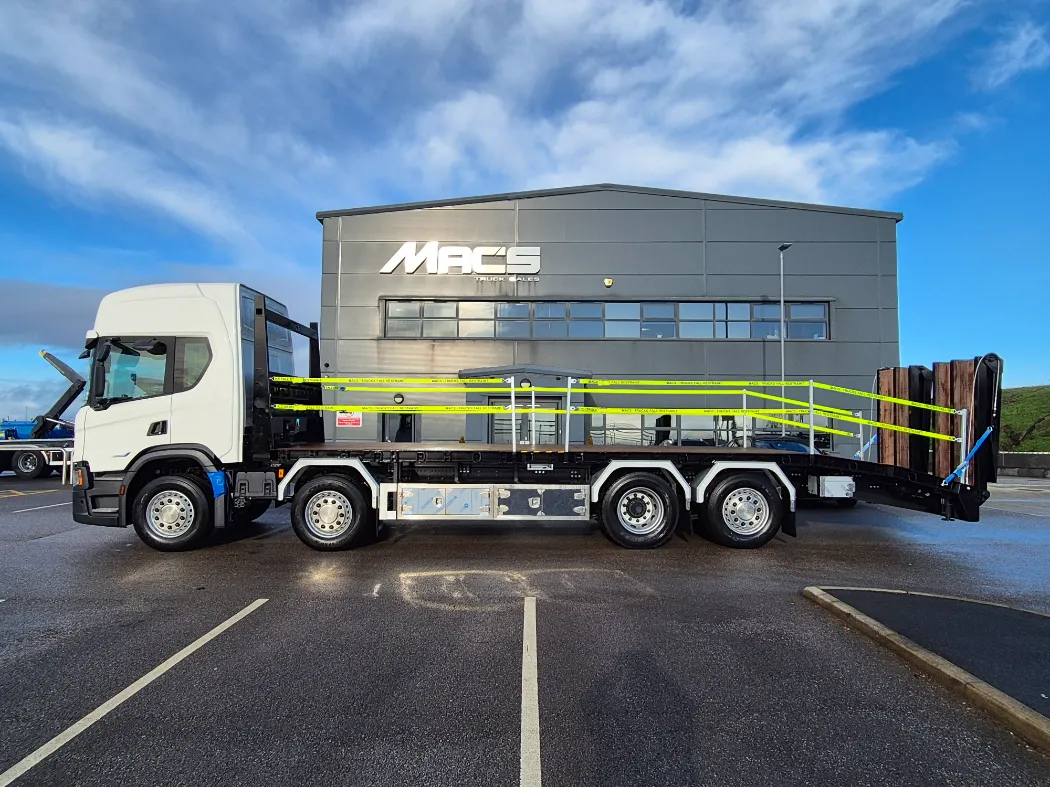 Scania P460 choice of sleeper and day cabs – 8x2 – Rear lift and steer – 9T front axles – 2 pedal opti cruise gearbox – Mac’s beavertail body – Hydraulic flip toe ramps – Hydraulic vertical mounted landing legs – Rear light protected – Lashing points in the side raves and headboard – Galvanised headboard and side raves – Winch – Stainless toolboxes – Body access ladder – Aluminium mud wings – Fall arrest posts and straps – VEHICLES IN STOCK AND IN BUILD NOW.