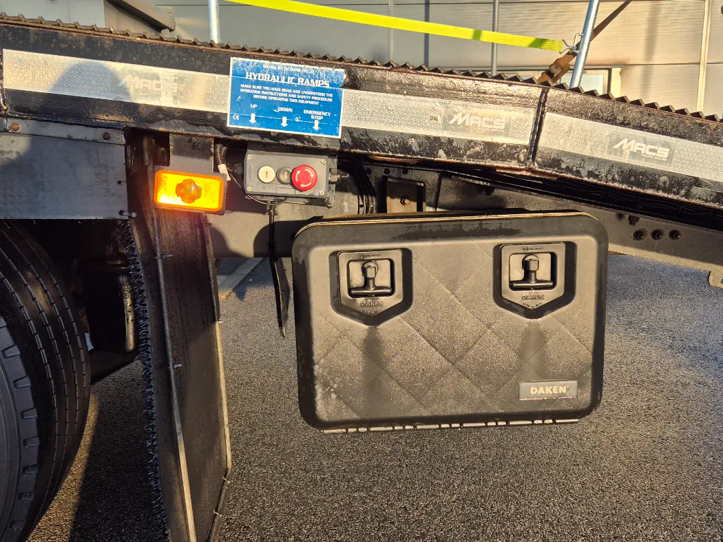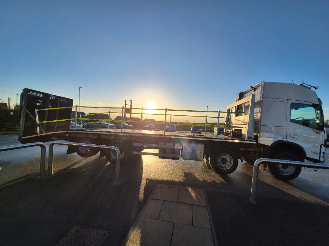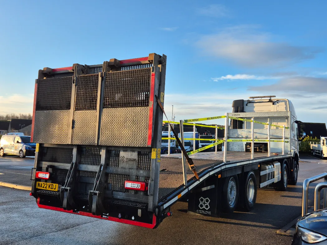 Ex rental fleet with full service history – Volvo FM 460 – Globetrotter sleeper cab – 8x2 – Rear lift and steer – I-Shift auto gearbox – Sterling beavertail body – Hydraulic flip toe ramps – Mesh up the back end and ramps – Gate in the middle of the ramps – Electric winch – Lashing rings down body centre and side raves – Toolbox storage – DVS ready for London – Top light bar with hrons and lazer lights – Choice of 3 around 300,000kms.