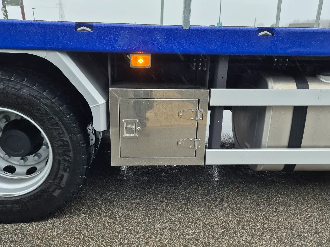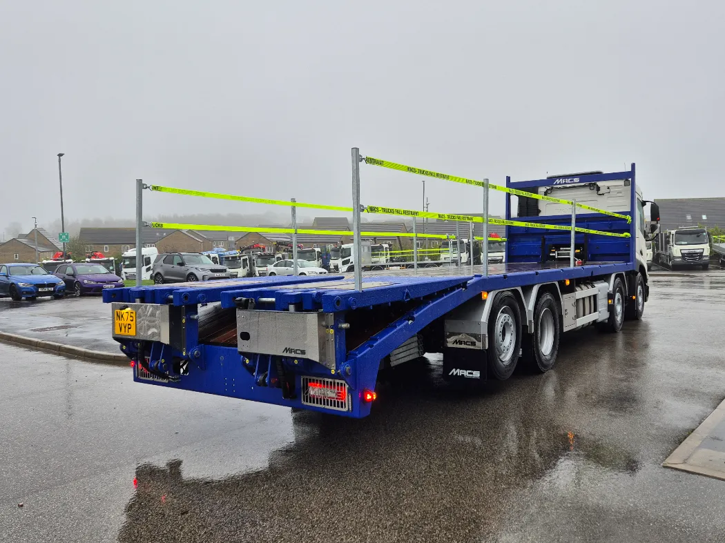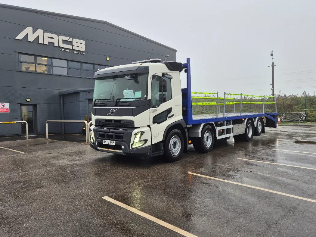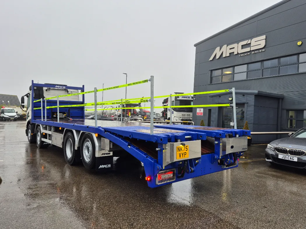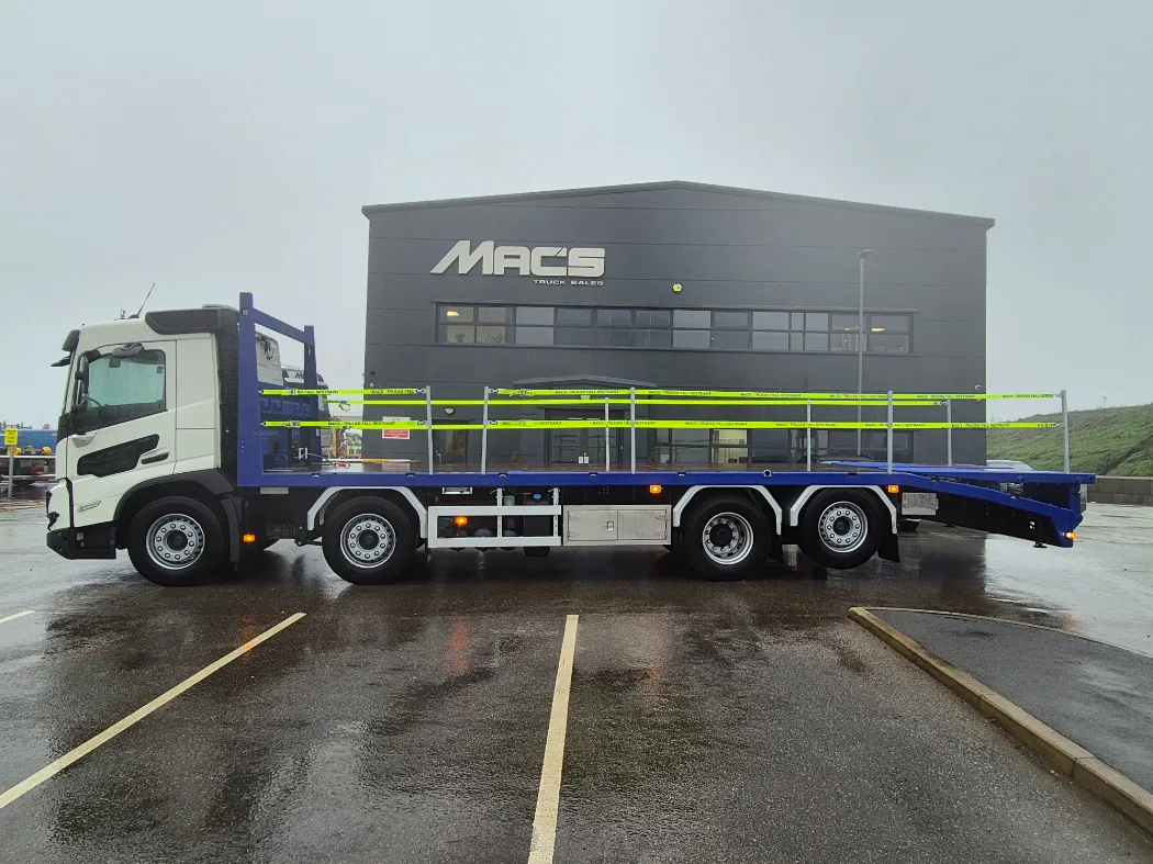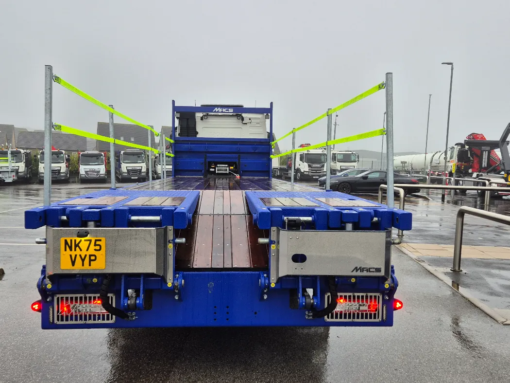 Volvo FMX 460 – Day cab – 3 Star DVS rated cab – Rear lift and steer – i-shift auto gearbox – Mac’s heavy duty cheesewedge body – Hydraulic bi fold ramps – Machine lugs – Galvanised headboard and side raves – Pull up lashing rings – Electric winch and wireless remote – Working lights – Strobes – Stainless toolboxes maximising space – Fall restraints – RANGE OF CHASSIS IN STOCK.