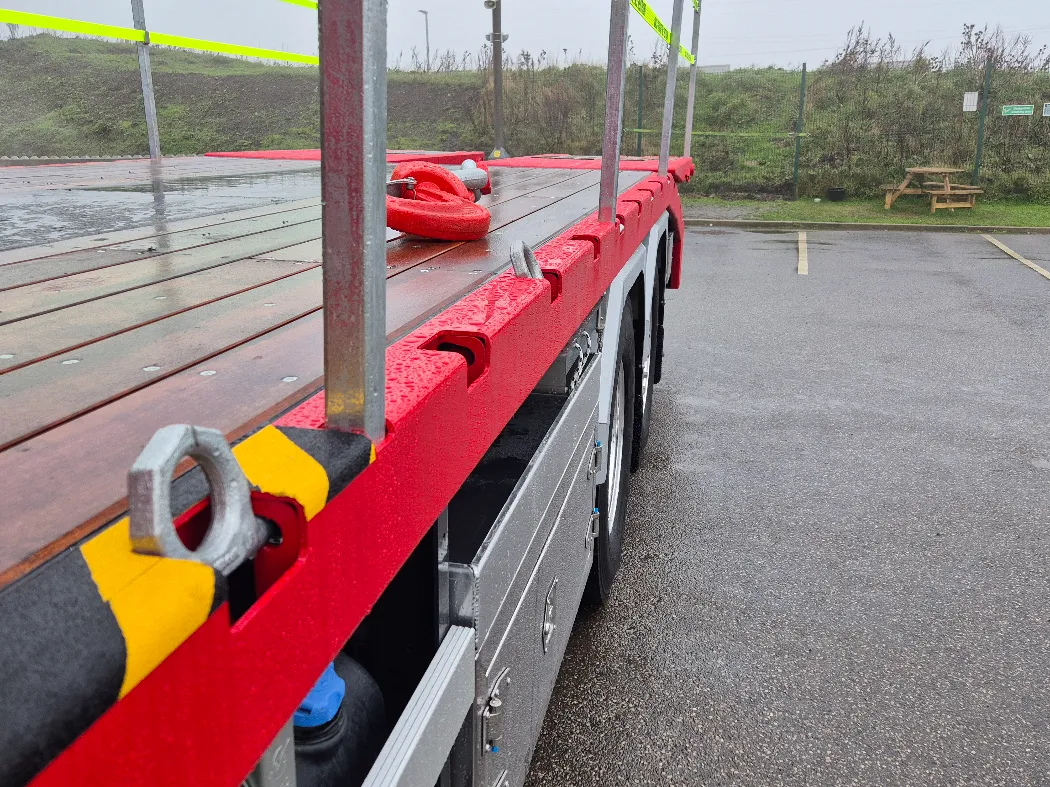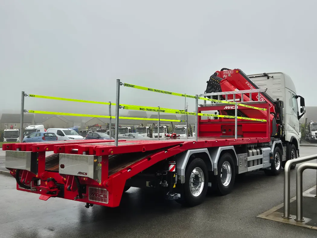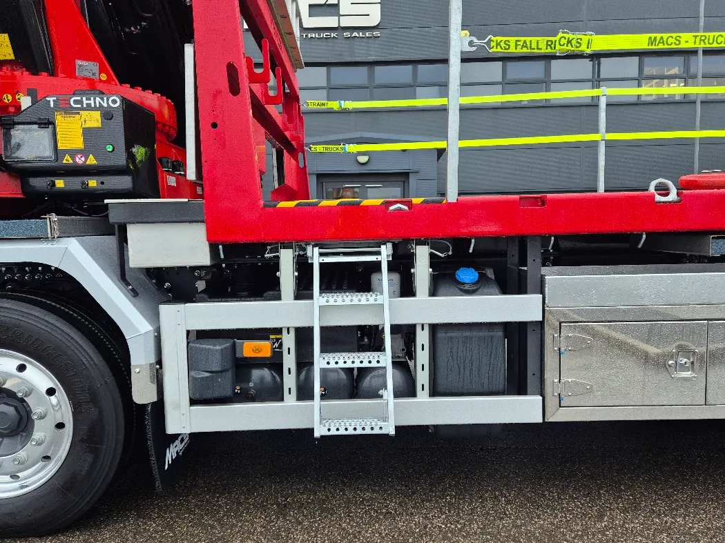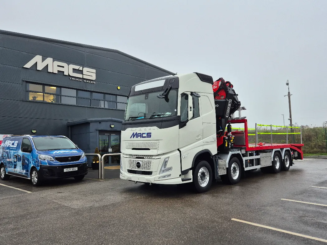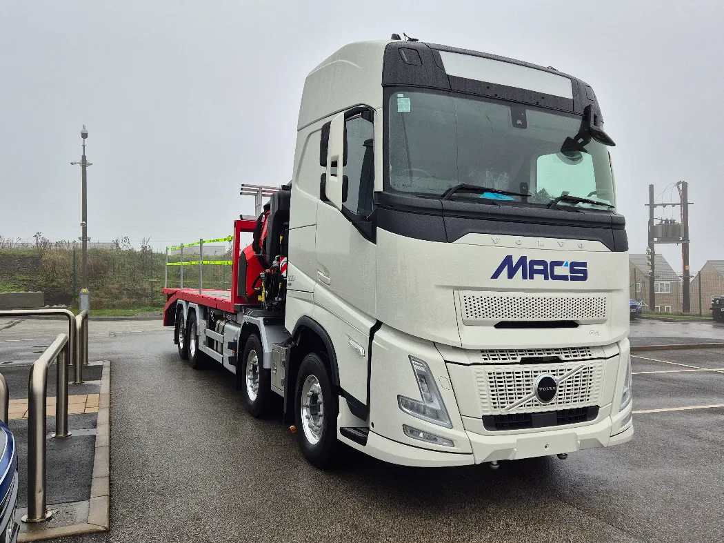 Volvo FH 500 – AERO globetrotter sleeper cab – 8x2 – Rear steer – I-Shift auto gearbox – Fassi F905RA.2.26 – FRONT LEGS BEHIND THE GRILL – Fully remote controlled – Mac’s Cheesewedge body – Hydraulic bi folding ramps – Fall restraints – Lashing points inset to the side raves – Ally mud wings – Stainless toolbox storage – CHOICE IN BUILD NOW.
