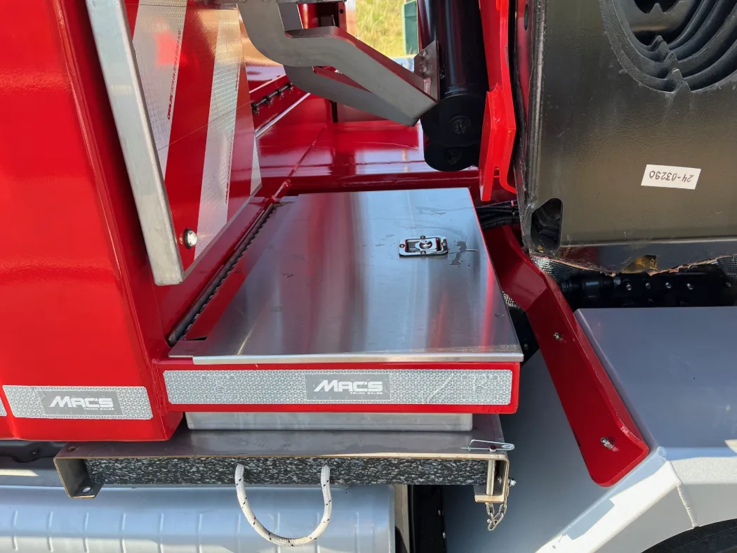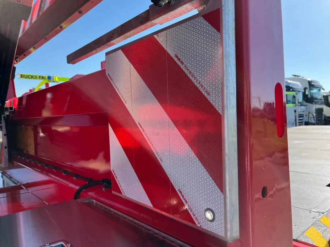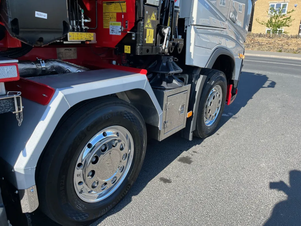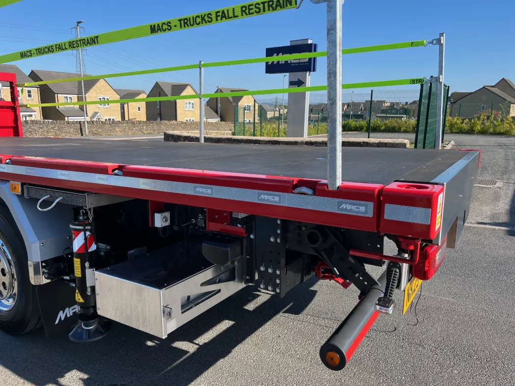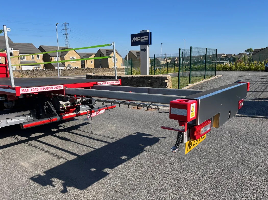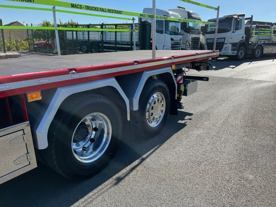 Volvo FH flat roof sleeper cab – 8x2 – Rear lift and steer – 9T Front axles – i-shift auto gearbox – Fassi F710RA.2.27 with L426 fly jib – 7 extensions in the crane and 6 in the fly jib – Full remote control – Mac’s Patented front legs system – V20 double fall winch/ hoist – Mac’s cabin spec body – Stainless mud wings – Stainless toolboxes – Galvanized side raves and headboard – Stainless chain wells with lids – Drawbar spec – Fall restraint straps and posts | FURTHER VEHICLES IN BUILD NOW