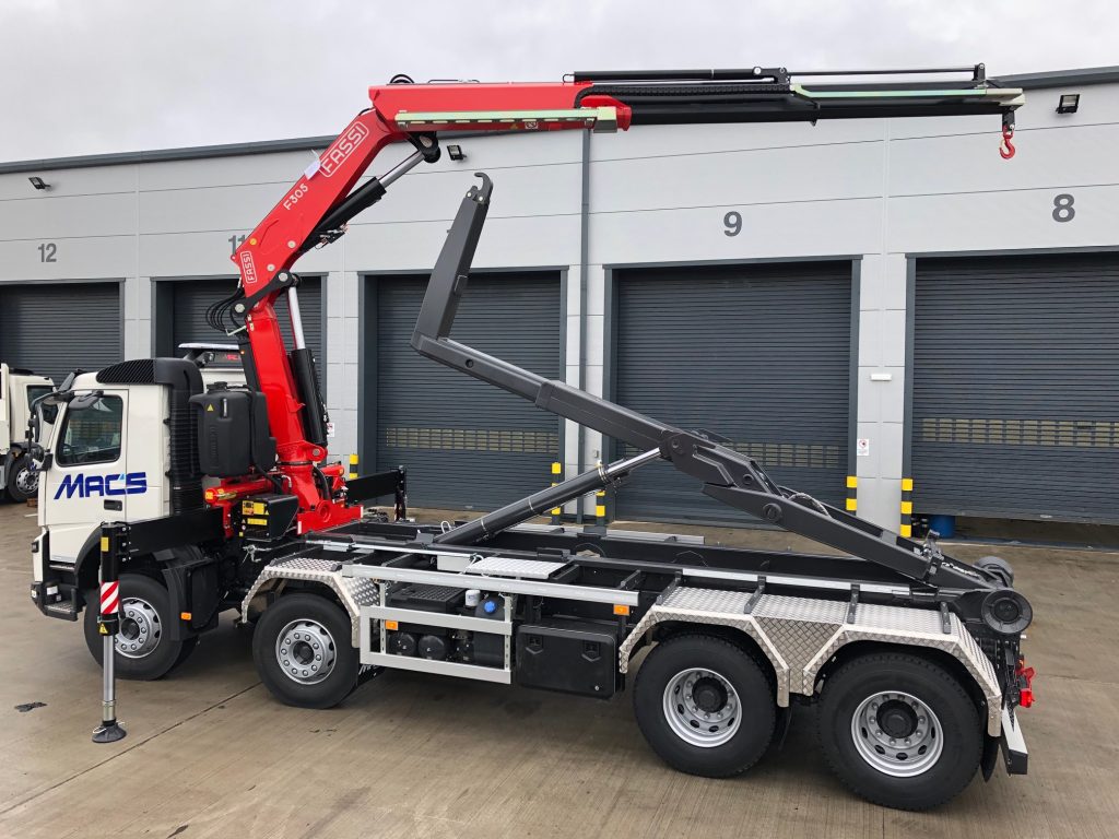 Volvo FL 250 – 18T GVW – Day cab – Manual 6 speed box – Cyclist window in the passenger door – VDL 14T hookloader – Transcover Tower sheeting system – Full in cab controls – Equipment can take any size bin - Hydraulic bin locks and extending arm – IN STOCK AVAILABLE FOR LEASE, HIRE OR RENT TO BUY