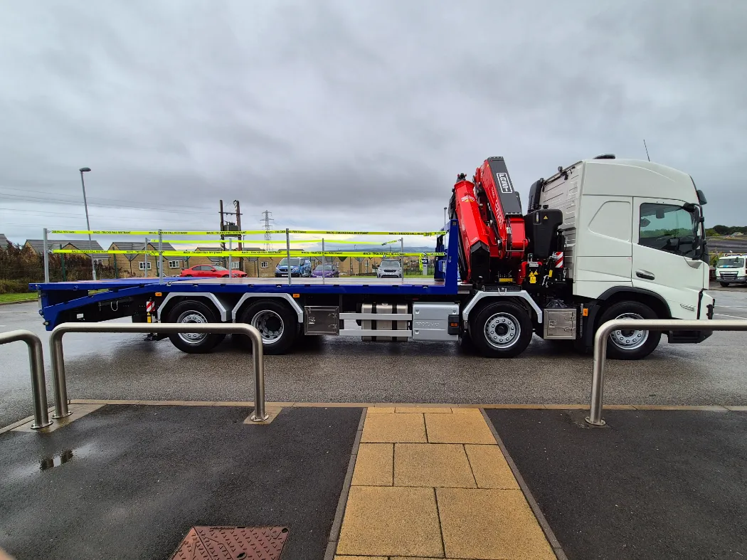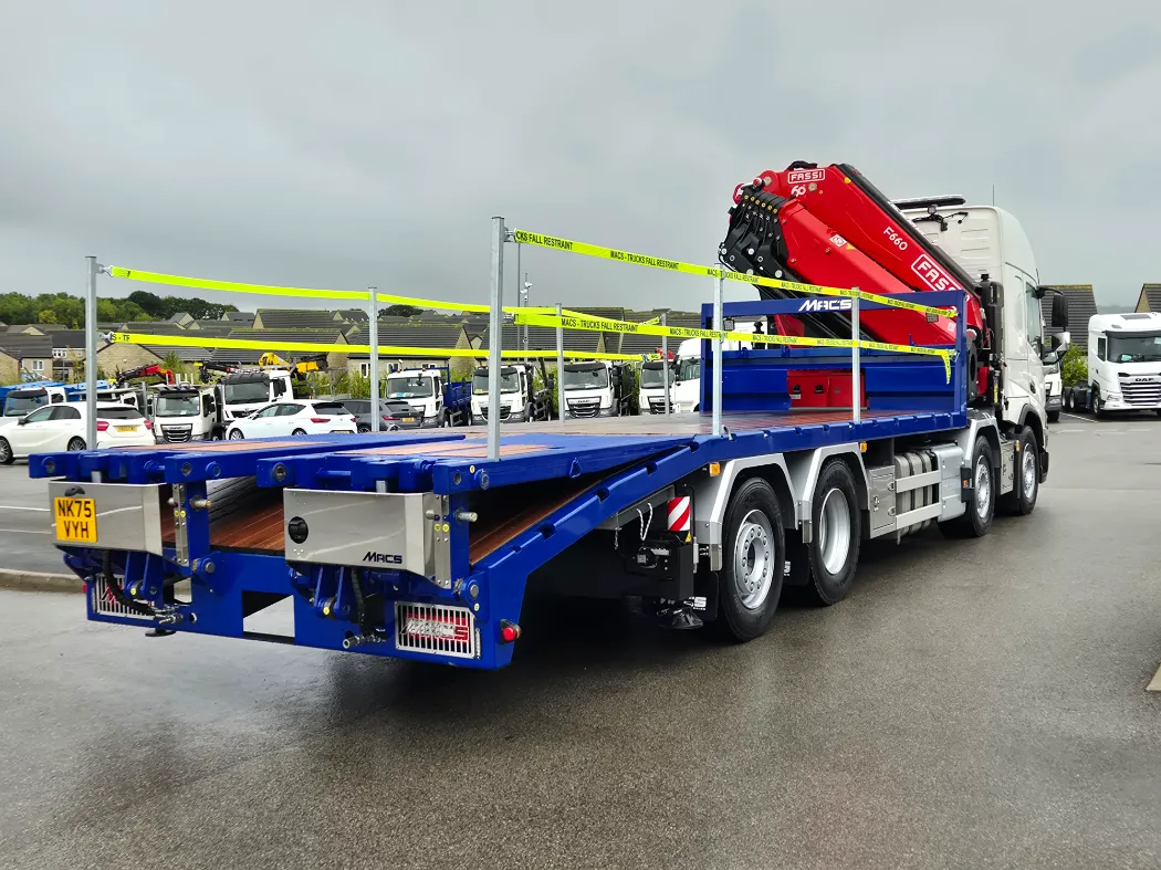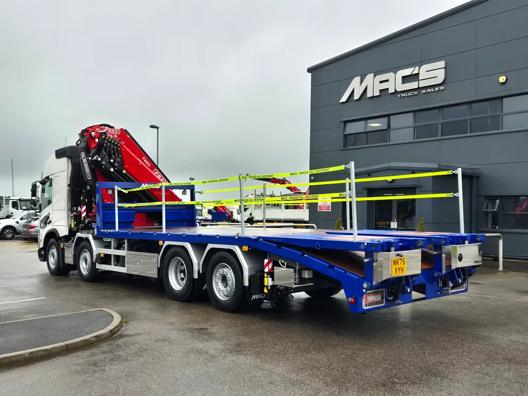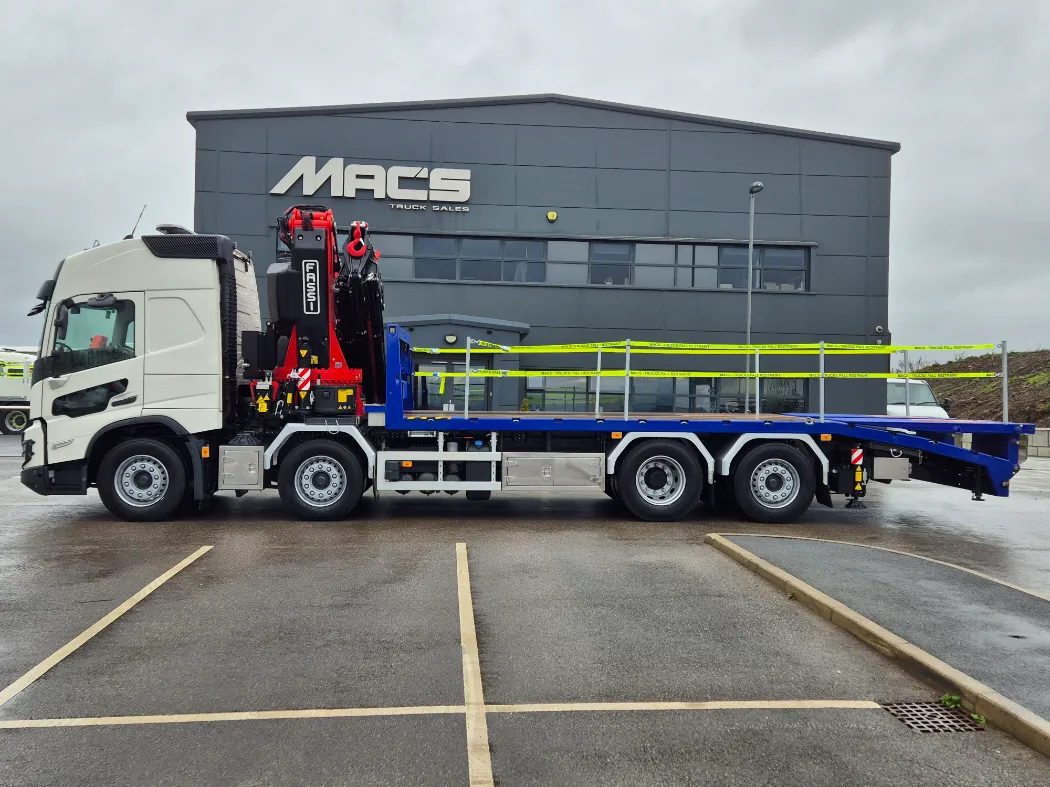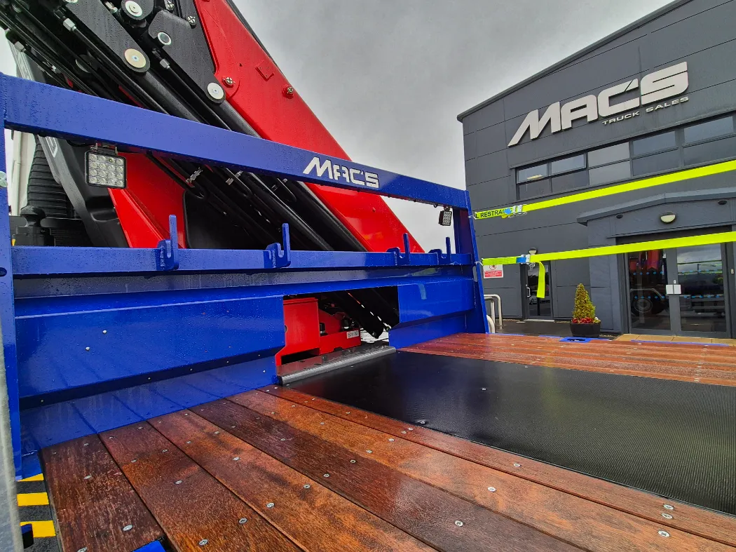 Volvo FMX 460 – 8x2 – Globetrotter sleeper cab – Rear lift and steers – 9T front axles with super singles – Fassi F660RA.2.26 – 6 Hydraulic extensions – Remote control – Mac’s Cheesewedge body – Hydraulic ramps – Stainless toolboxes – Aluminium mud wings – Rear light guards – Fall restraints – Fully galvanised side rails and headboard – Hardwood flooring – Lashing rings in the floor – IN BUILD NOW.